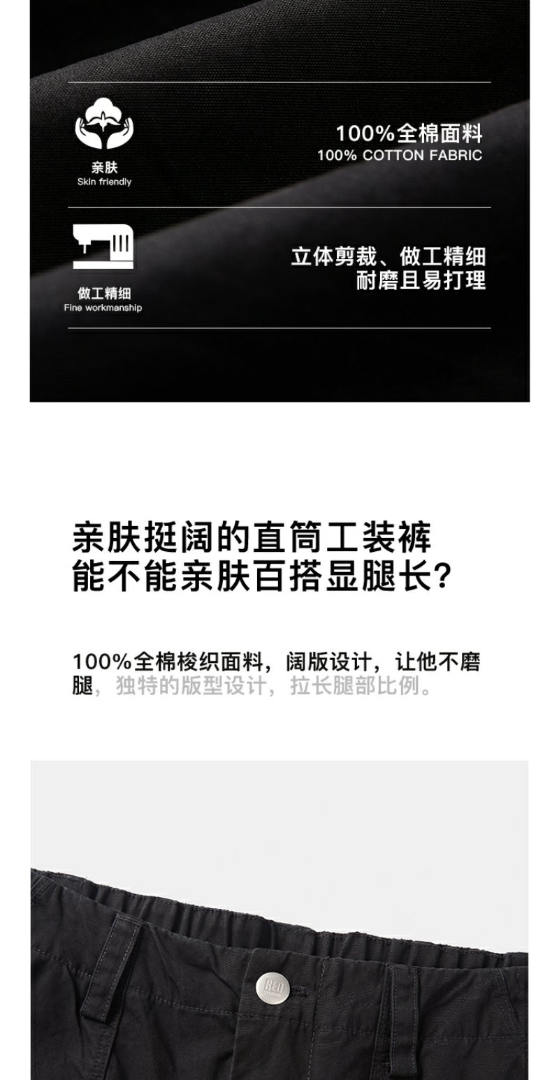 REDCHARCOAL红炭 酵石磨阔版宽松黑色工装裤男秋冬美式直筒休闲裤