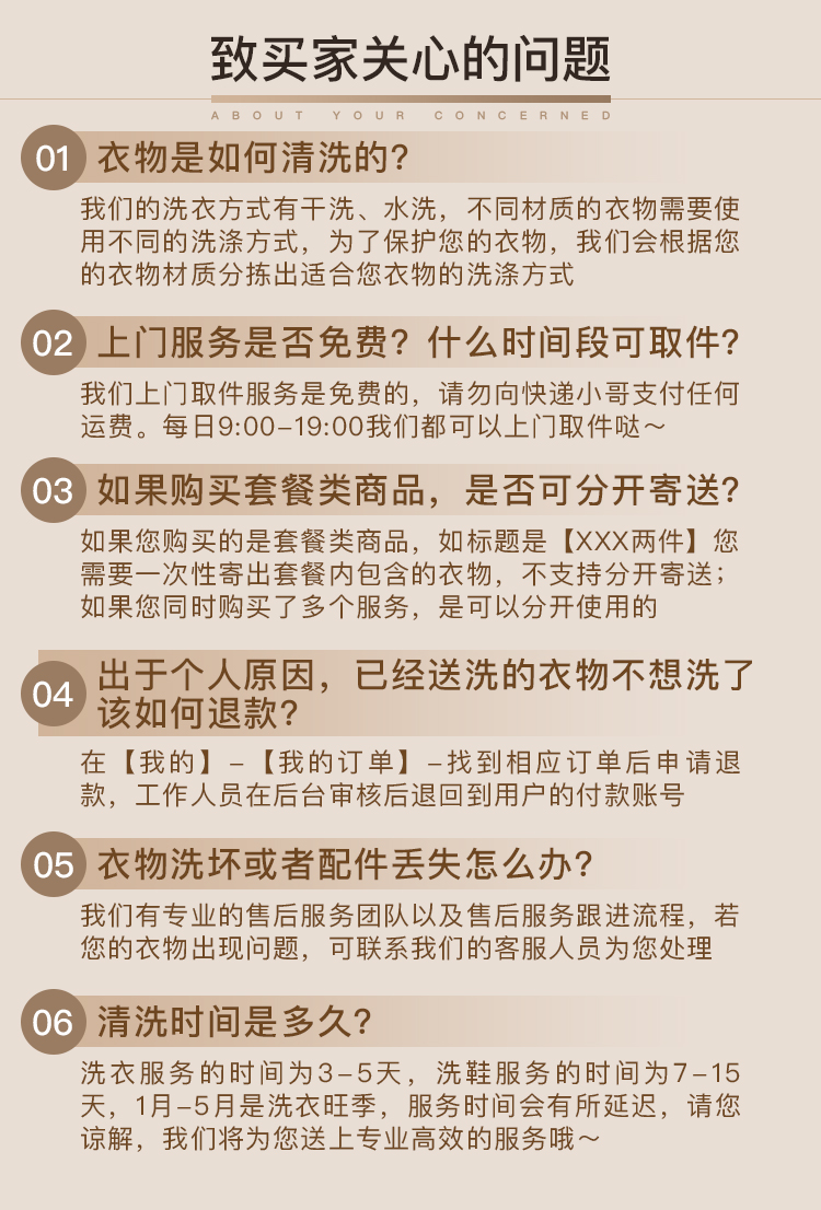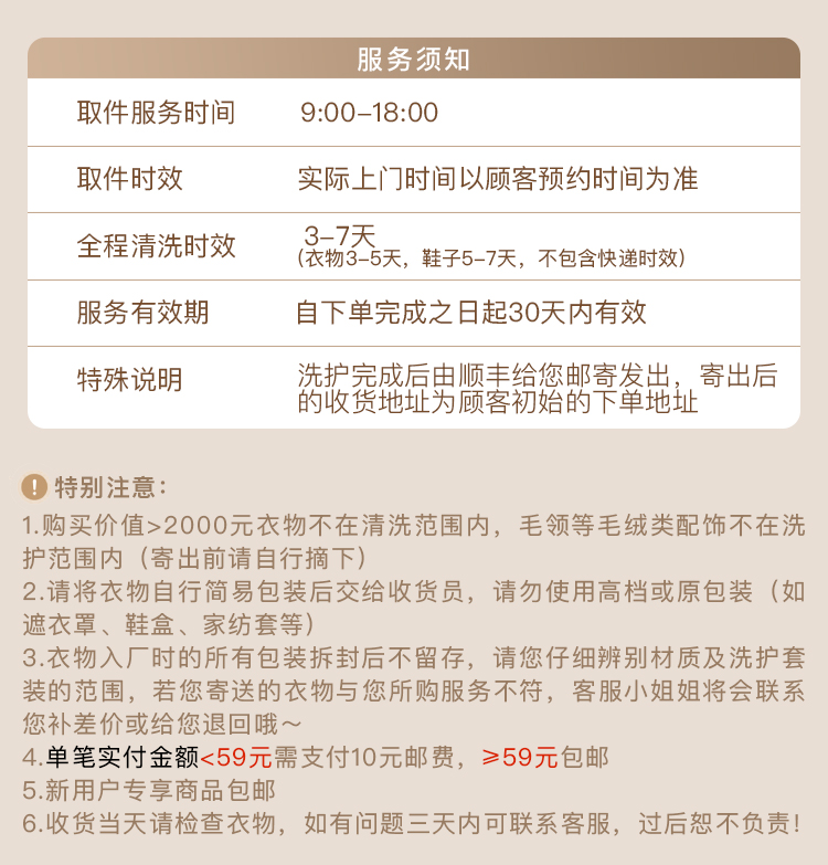 1、本套餐可清洗价值2000以内的西装,不包含奢侈品牌或高价值西服及套装、单品;