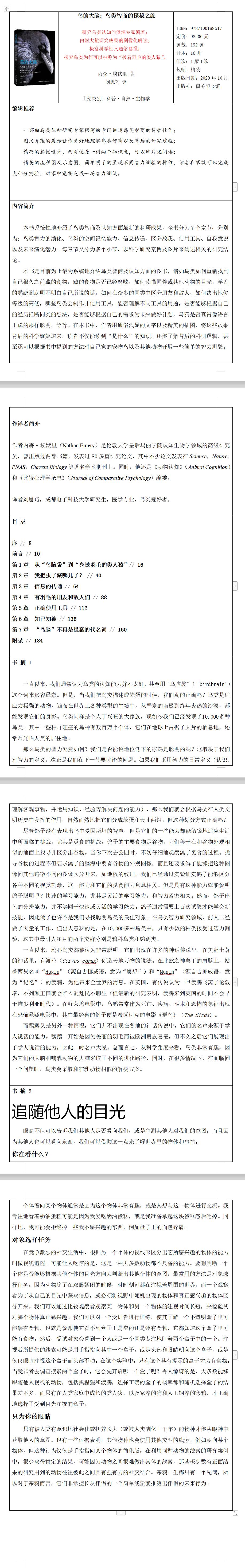 鸟的大脑——鸟类智商的探秘之旅 [英]内森•埃默里 著 商务印书馆