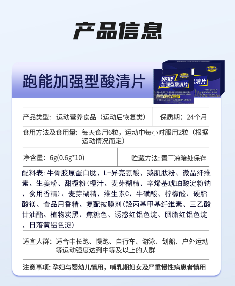 (2026新款)跑能加强型酸清片10粒1盒(鹅肌肽运动营养食品)(跑步途中抽筋酸爽)