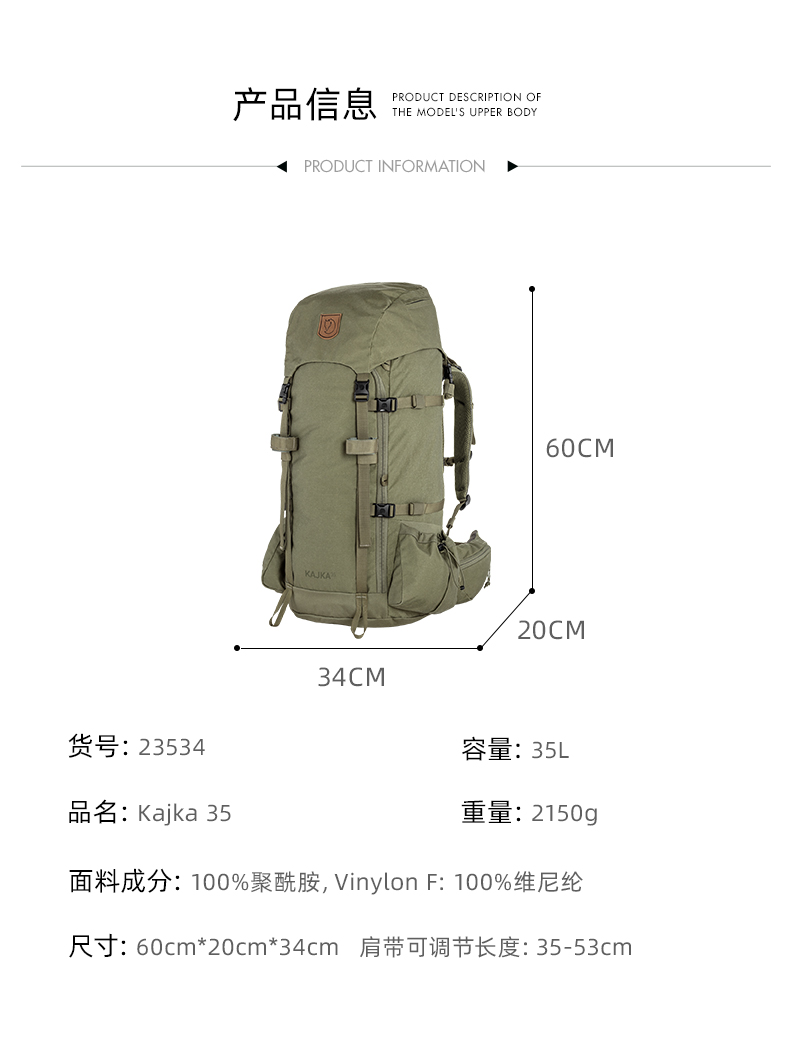 Fjallraven/北极狐Kajka 35户外双肩背包登山包大容量远足 23534