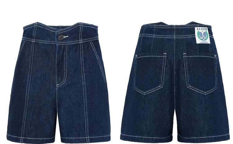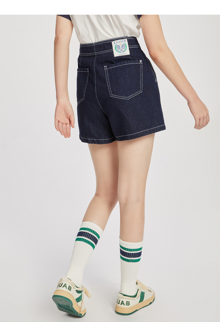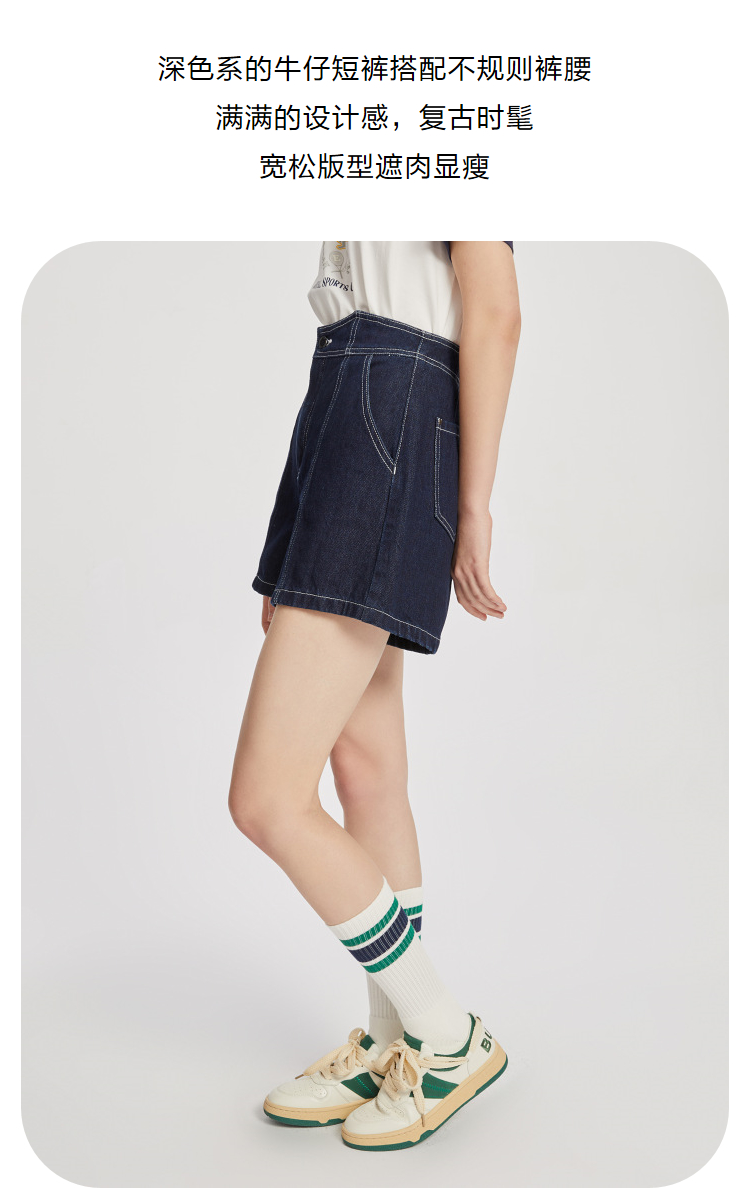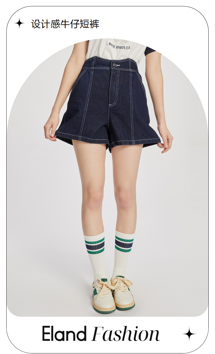 ELAND衣恋复古别致宽松显瘦不规则裤腰牛仔短裤女EETJC24H4M