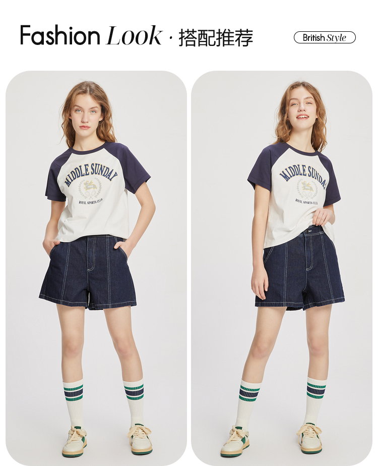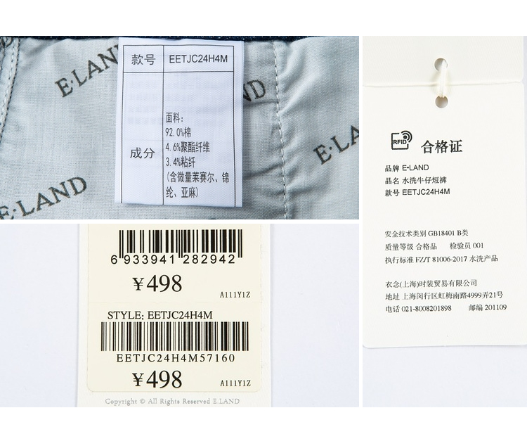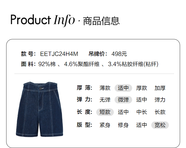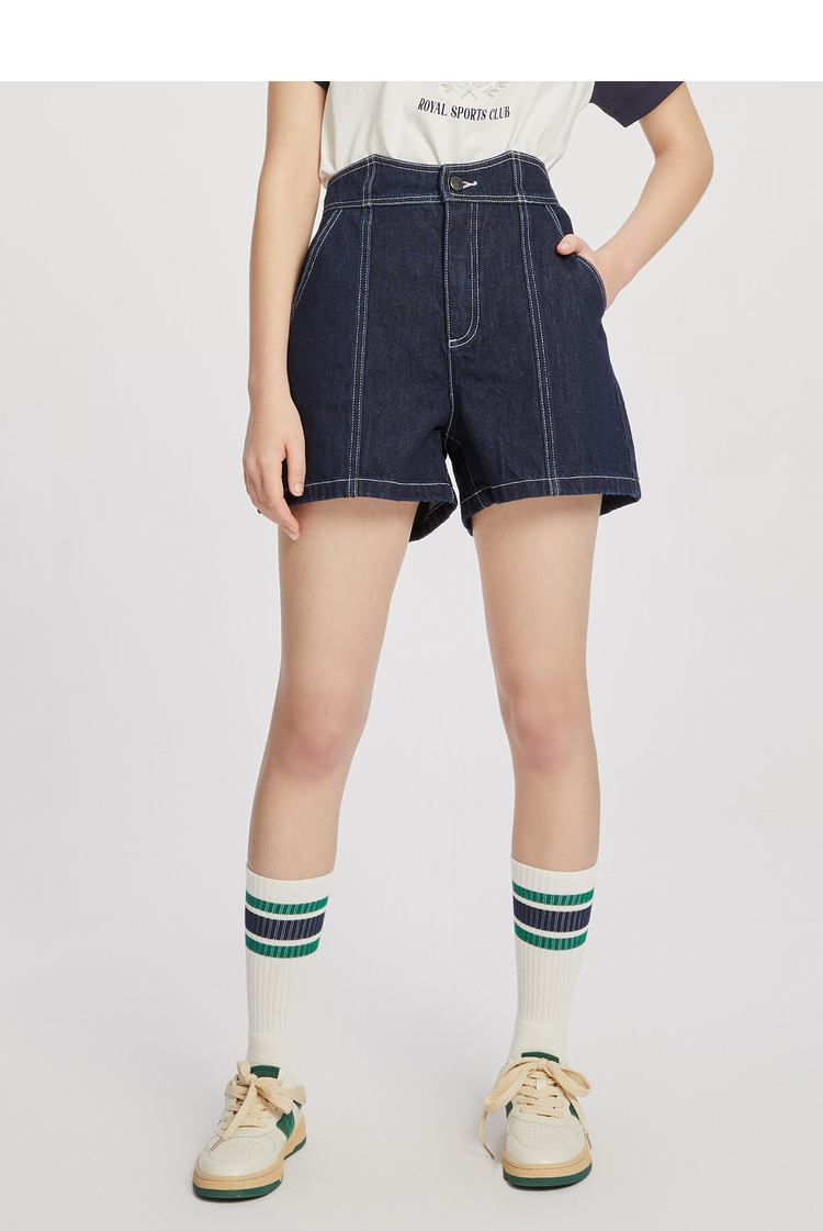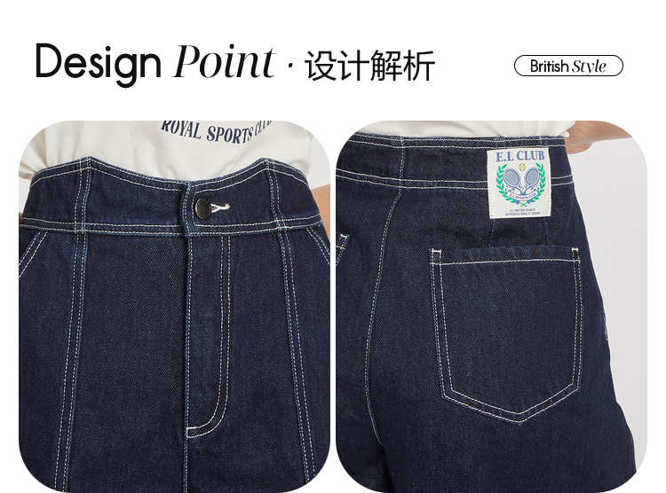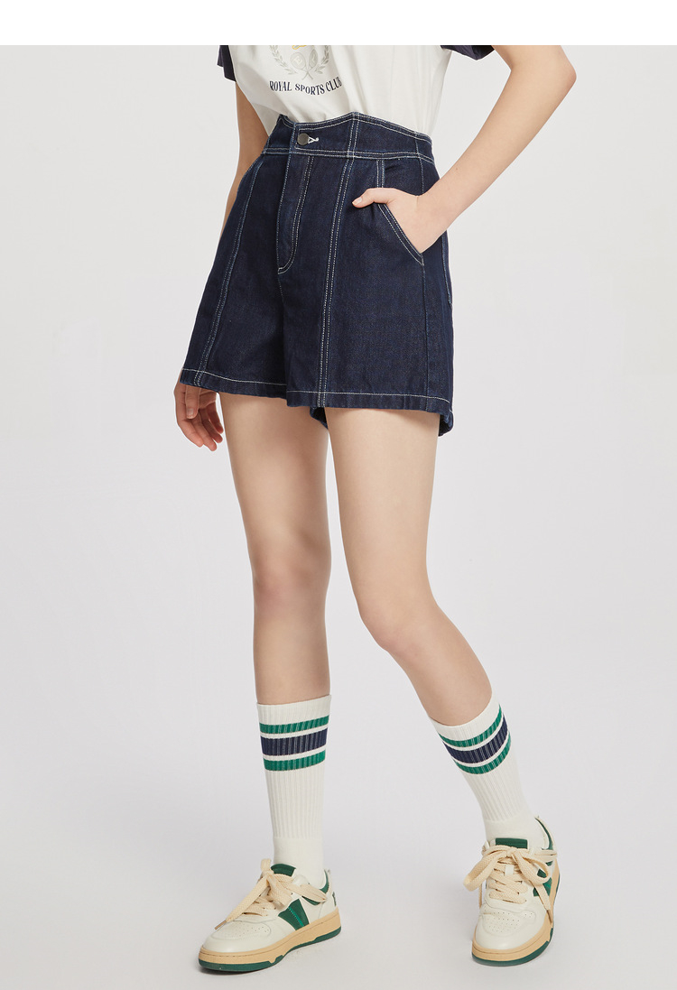 ELAND衣恋复古别致宽松显瘦不规则裤腰牛仔短裤女EETJC24H4M