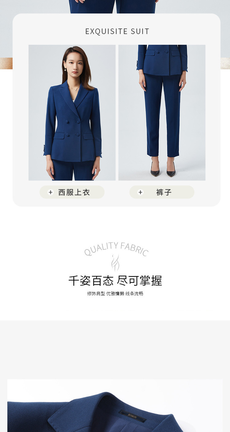 【上衣+裤子】罗蒙西装套装抗皱微弹双排扣气质通勤商务休闲两件套女