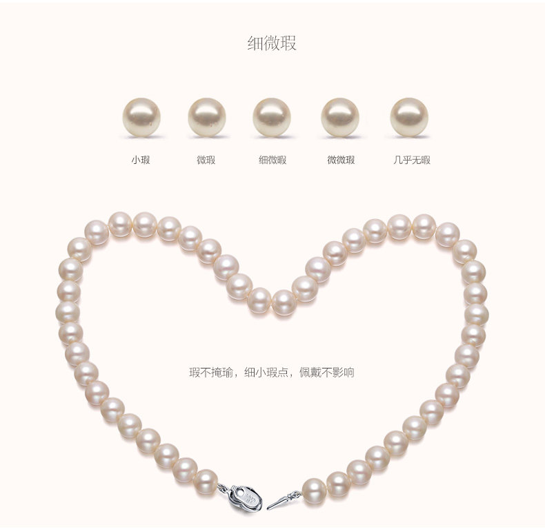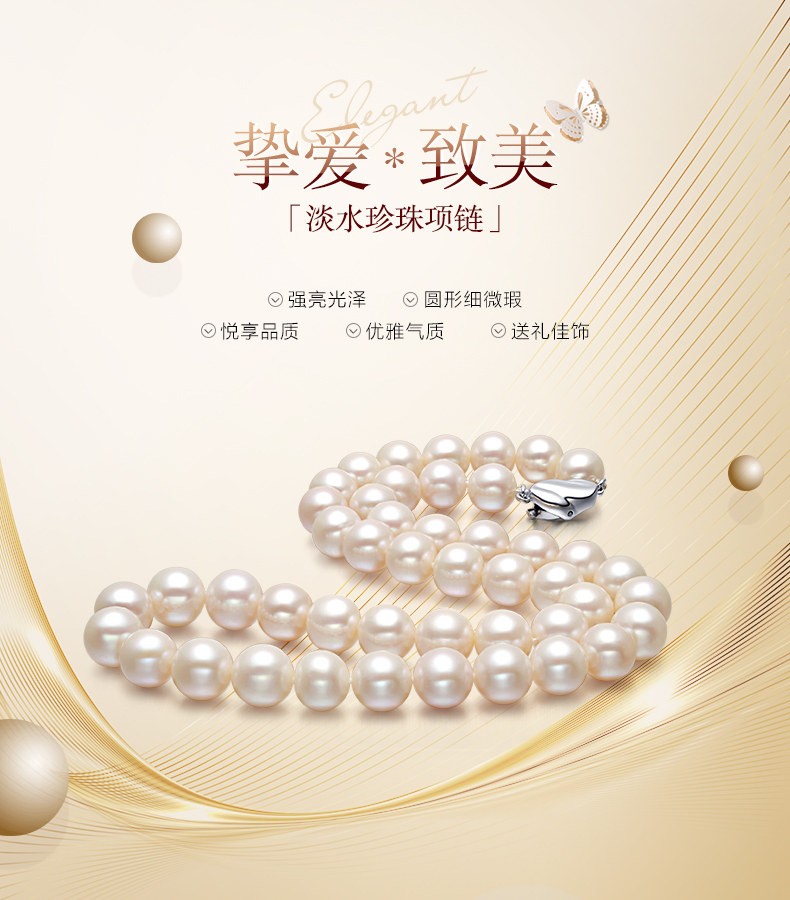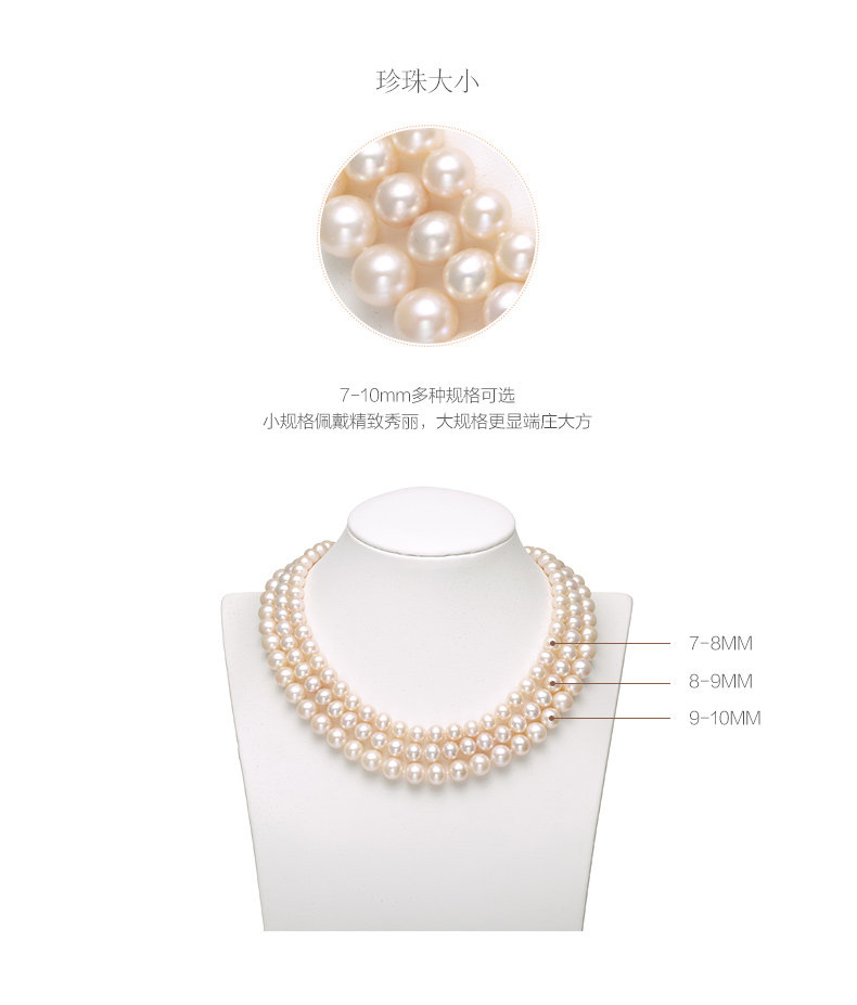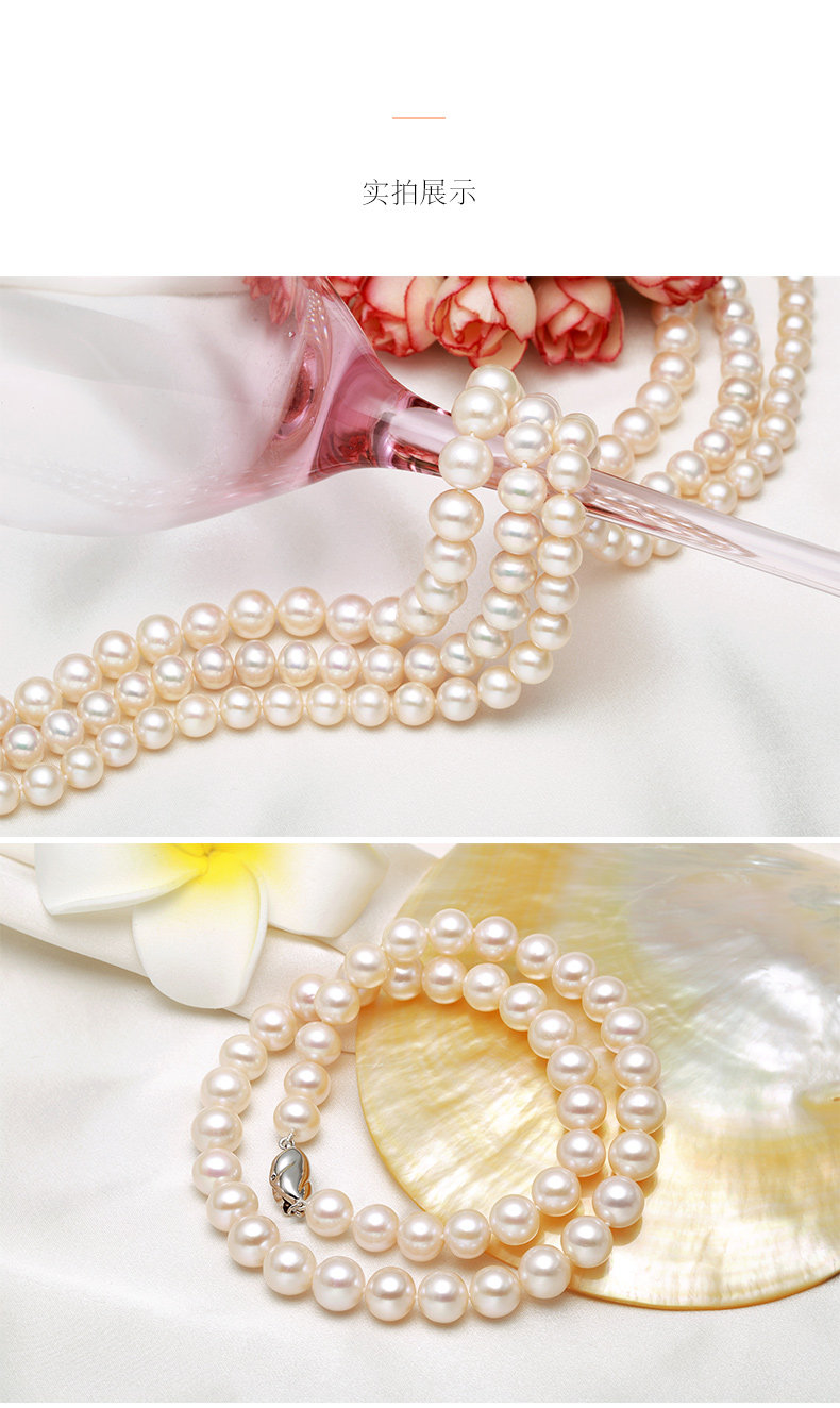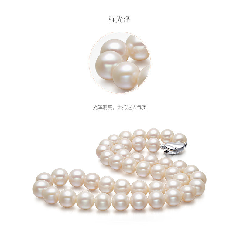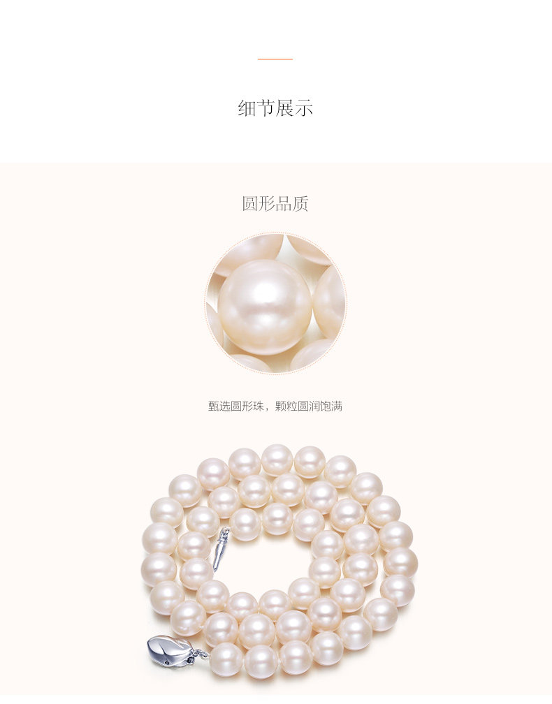 六鑫珠宝 挚爱致美圆形强光白色天然淡水珍珠项链