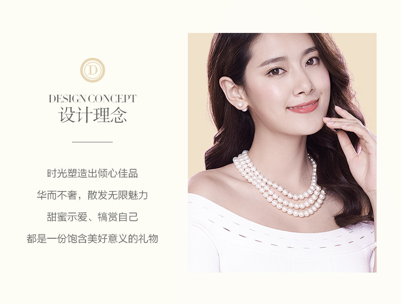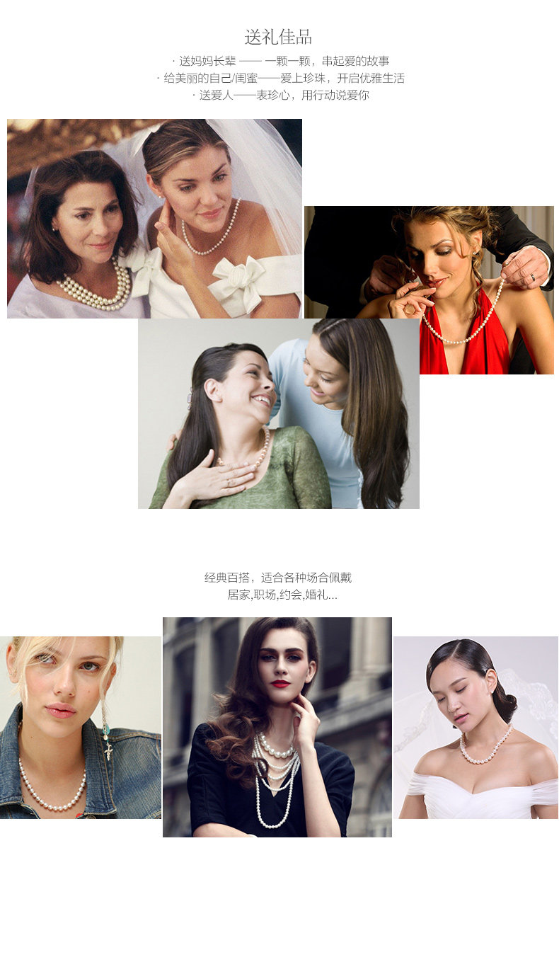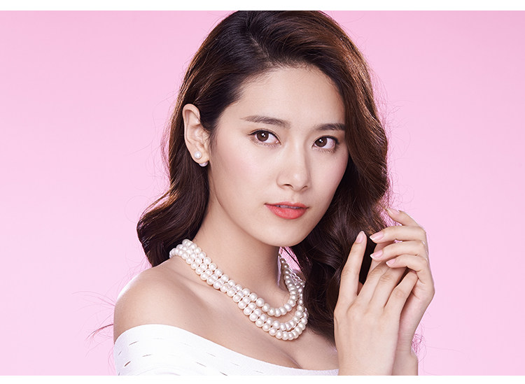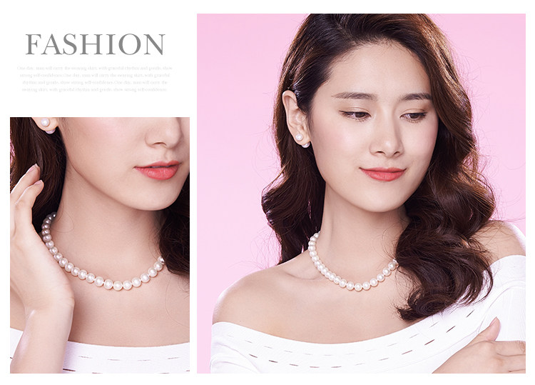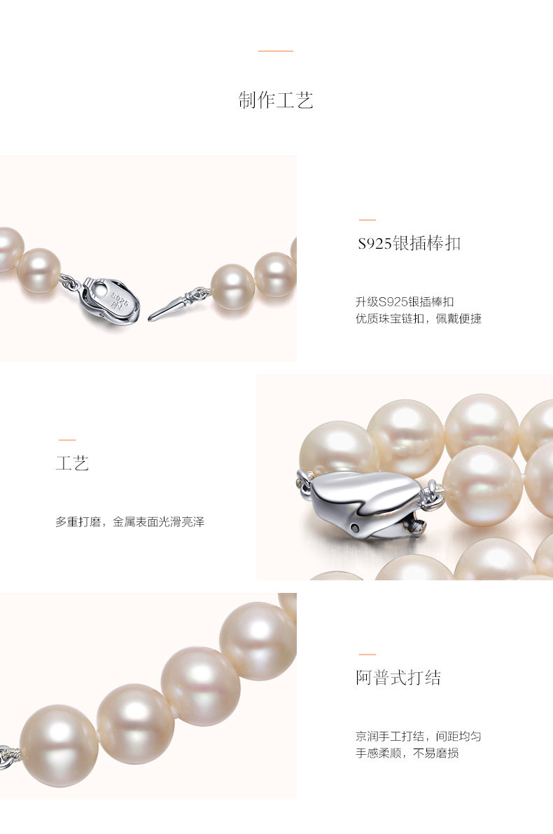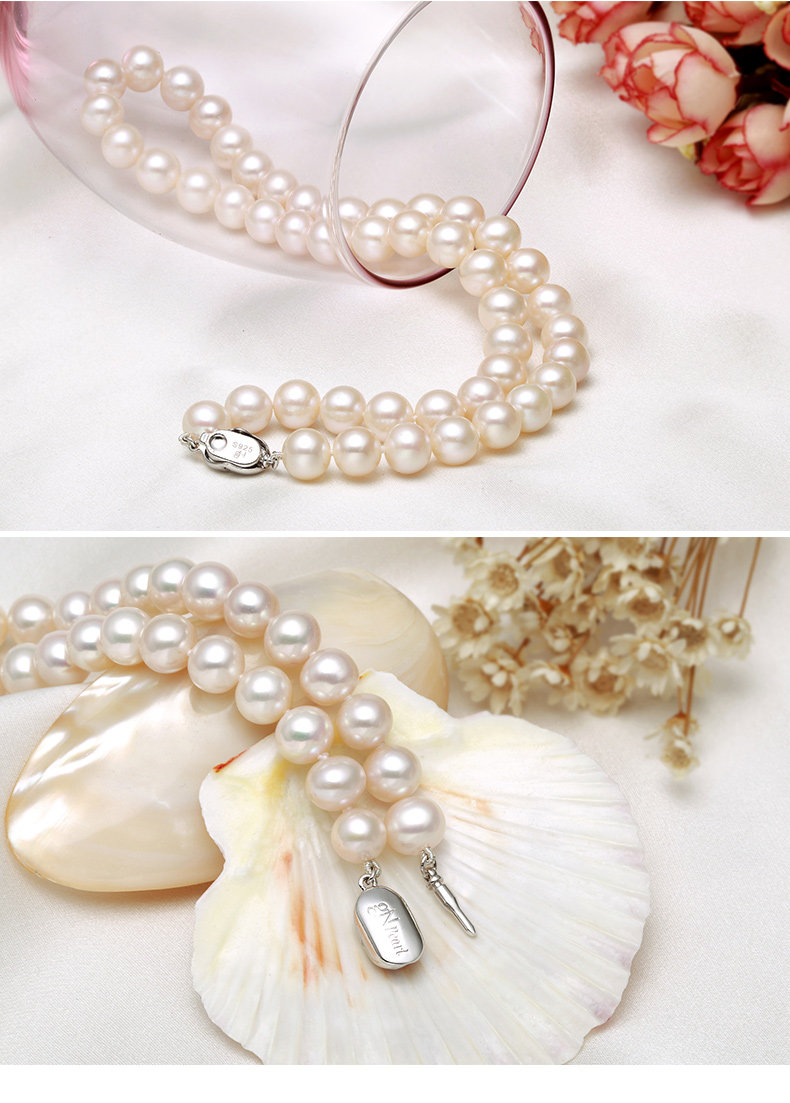 六鑫珠宝 挚爱致美圆形强光白色天然淡水珍珠项链