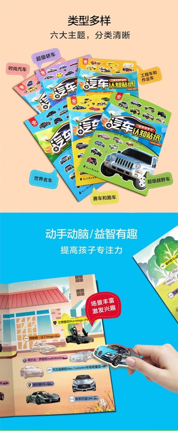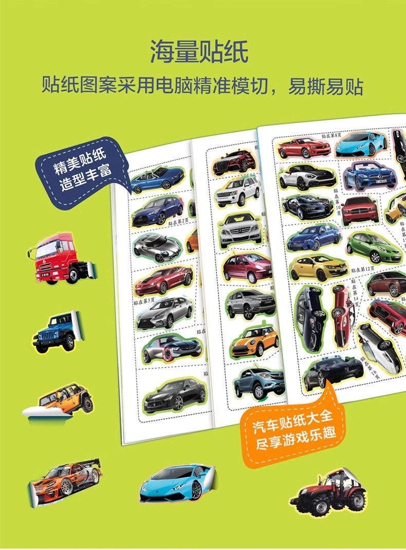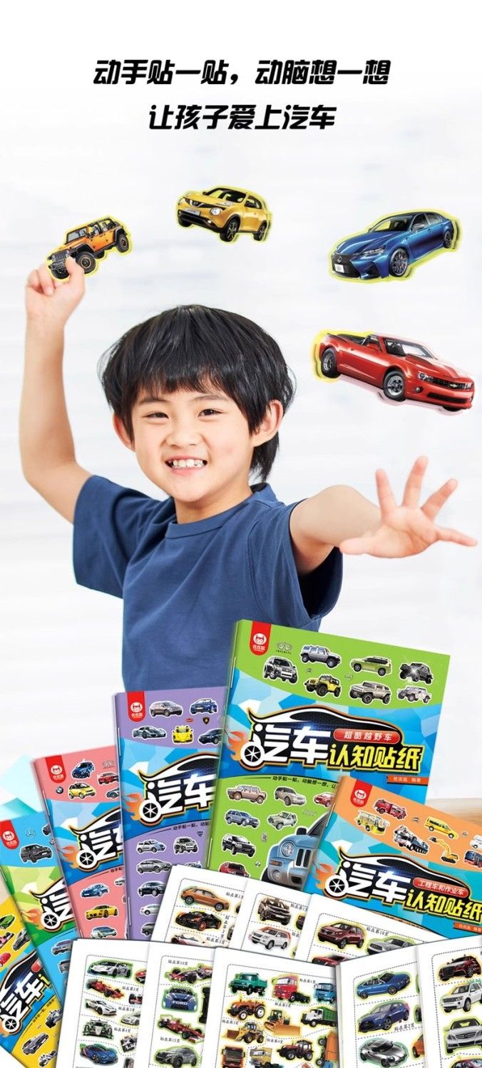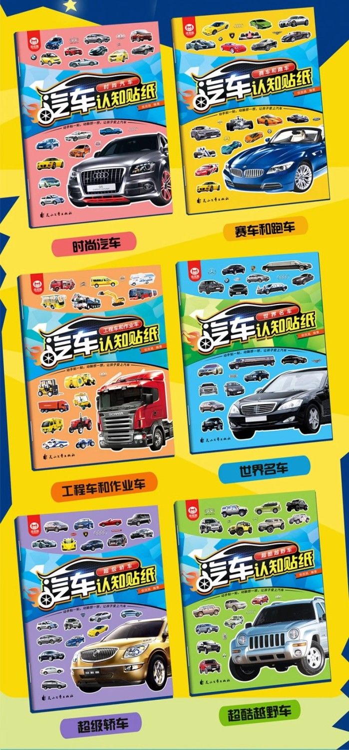 汽车贴纸书全6册儿童贴纸书工程车小车迷贴纸益智大脑开发书男孩