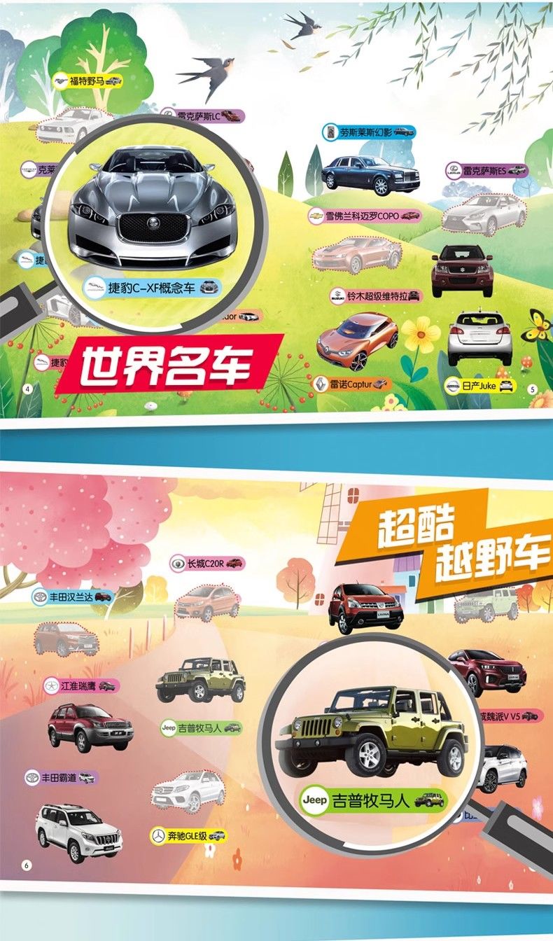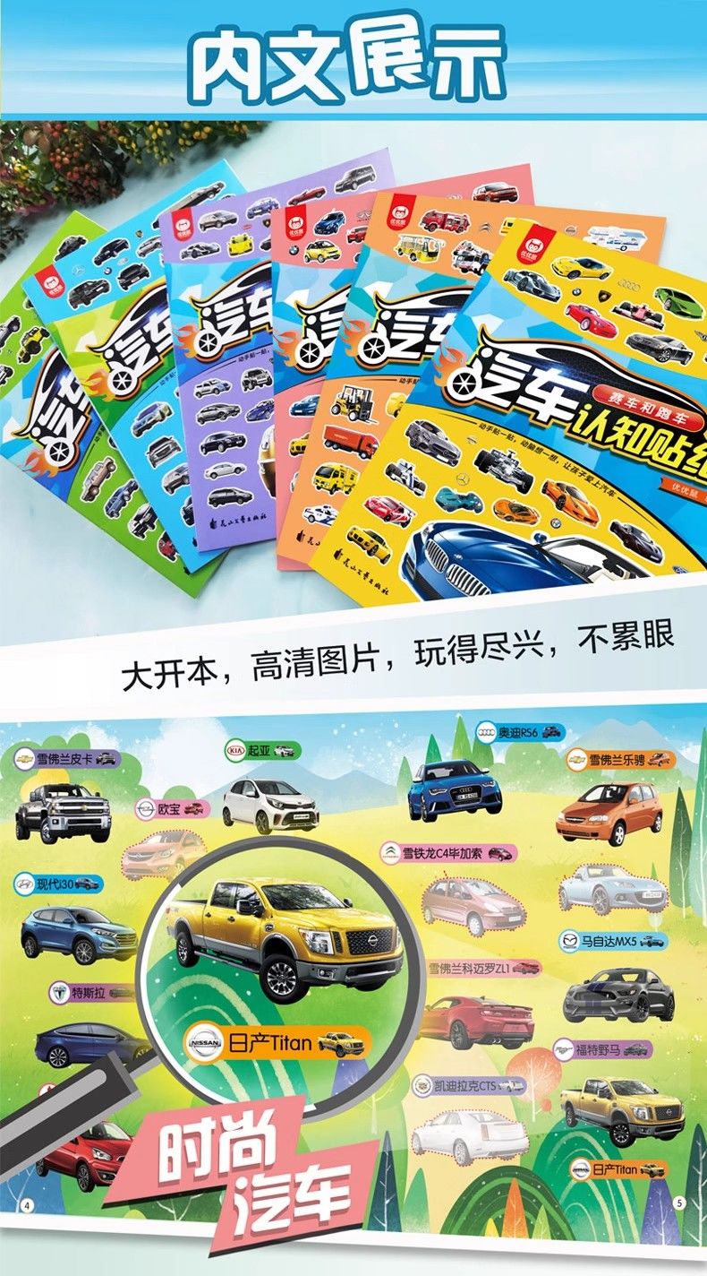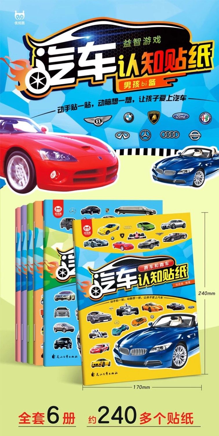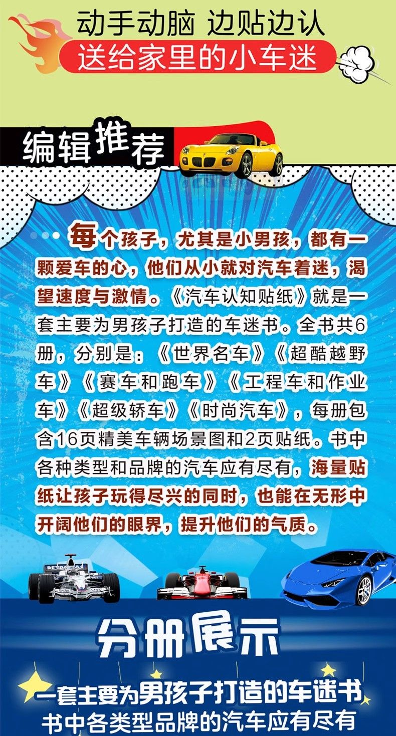 汽车贴纸书全6册儿童贴纸书工程车小车迷贴纸益智大脑开发书男孩