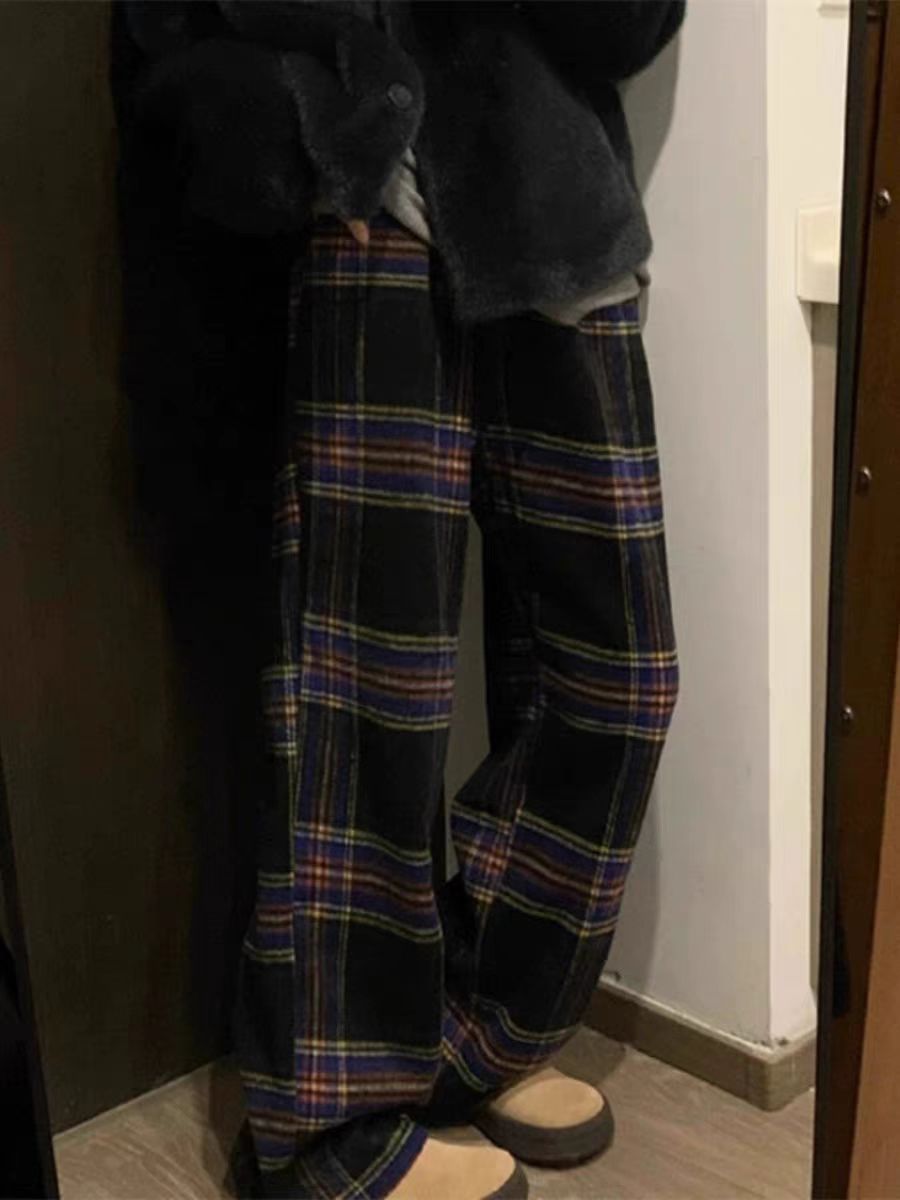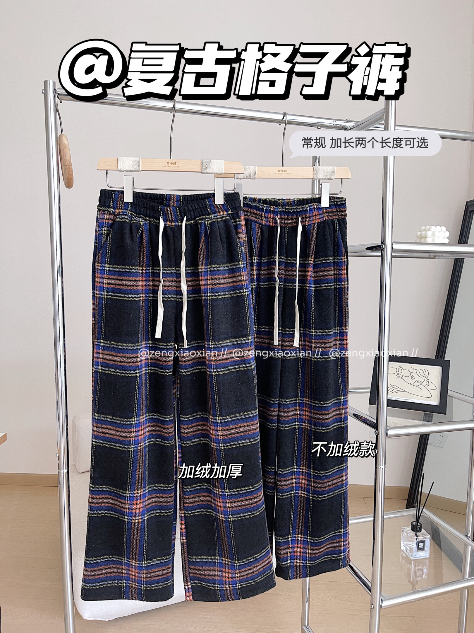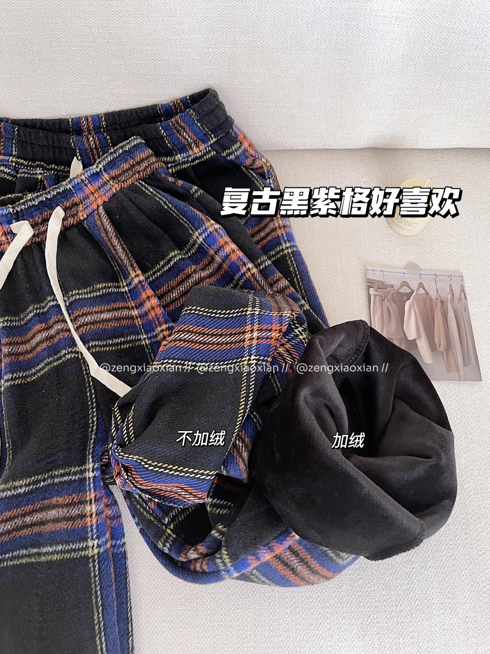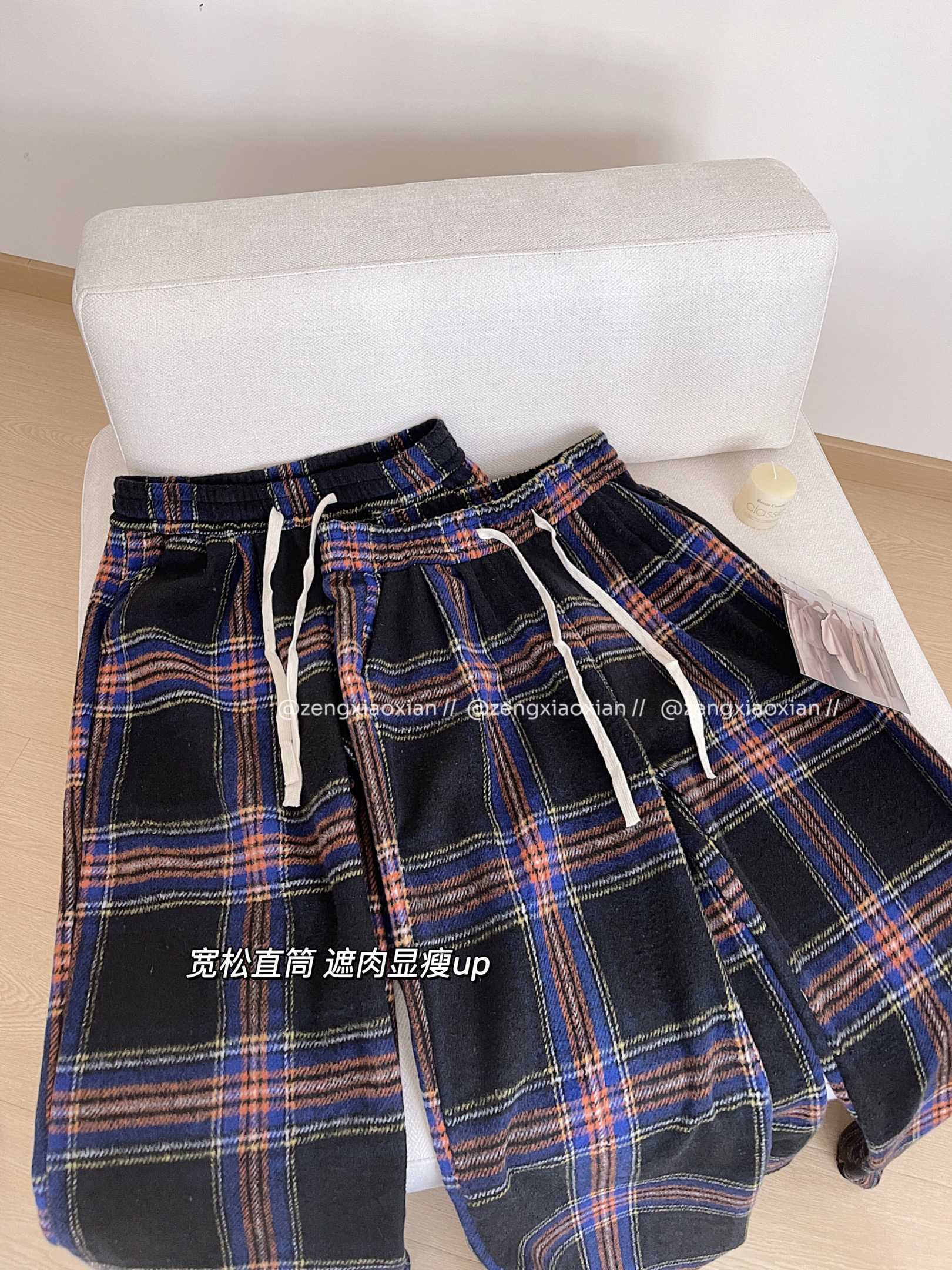 <曾小咸推荐> 韩版毛呢格子直筒裤 不加绒日常159/件 活动价99.9!! 加绒日常169 活动价109.99/件!!