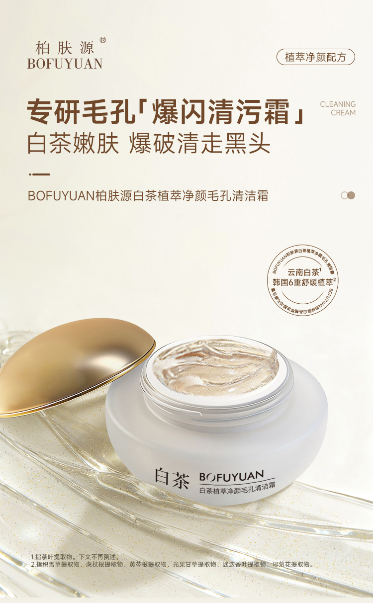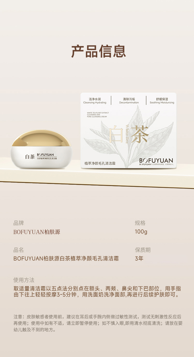 柏肤源 白茶植萃净颜毛孔清洁霜