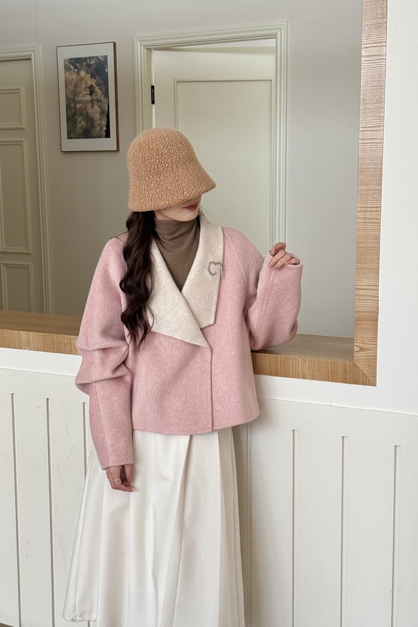 Le Malene 粉色温柔气质短款羊毛呢子外套 21102