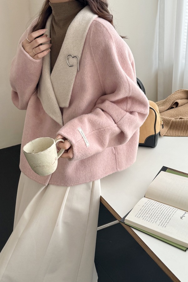AUGUST 1 EIGHT 粉色解构感机车短大衣 4450