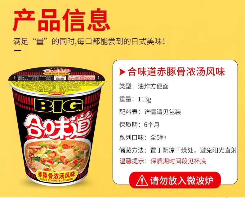 110gBIG杯 日清合味道赤豚骨浓汤风味杯面