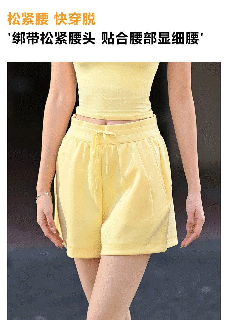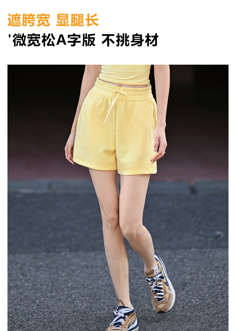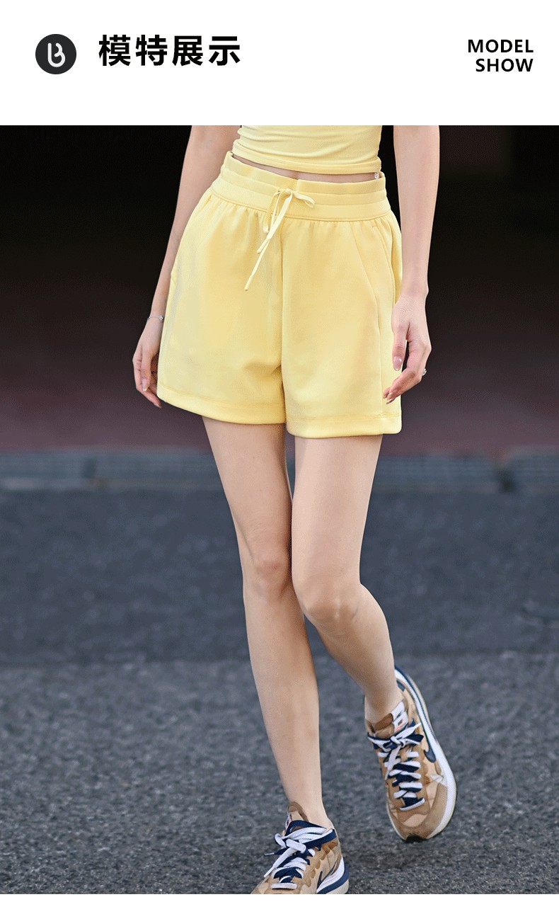 Beemen宽松直筒女子四分运动短裤 抽绳高腰搭配口袋 云感面料助力户外跑步训练