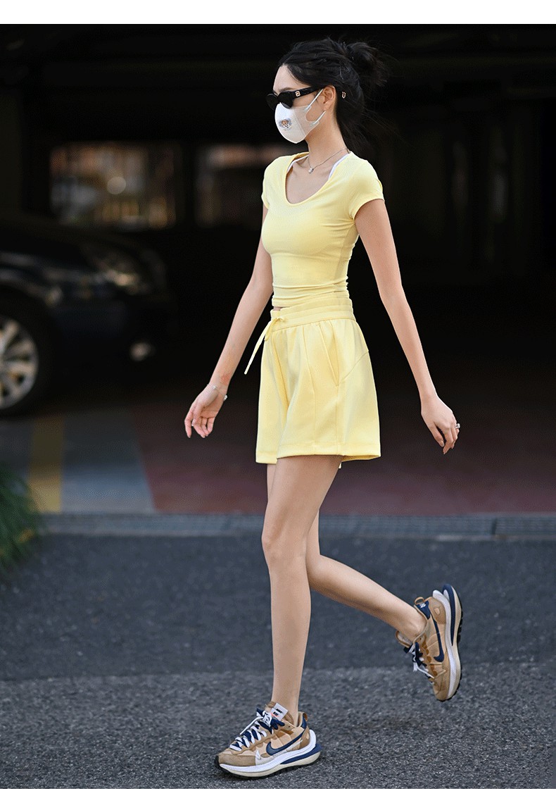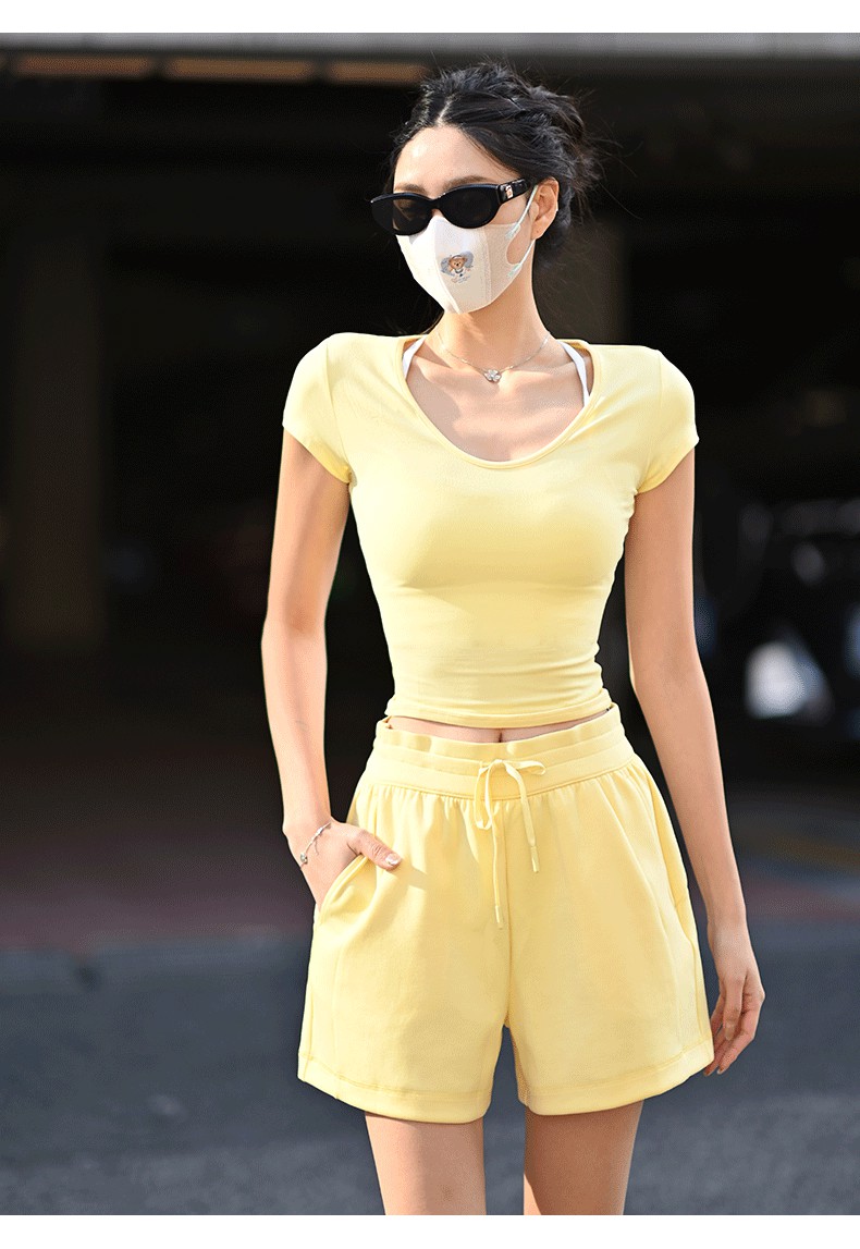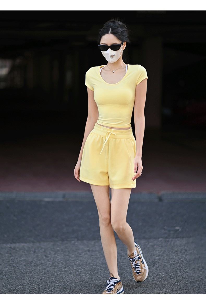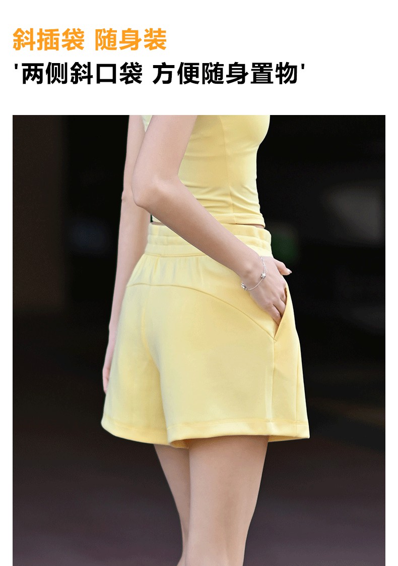 Beemen宽松直筒女子四分运动短裤 抽绳高腰搭配口袋 云感面料助力户外跑步训练