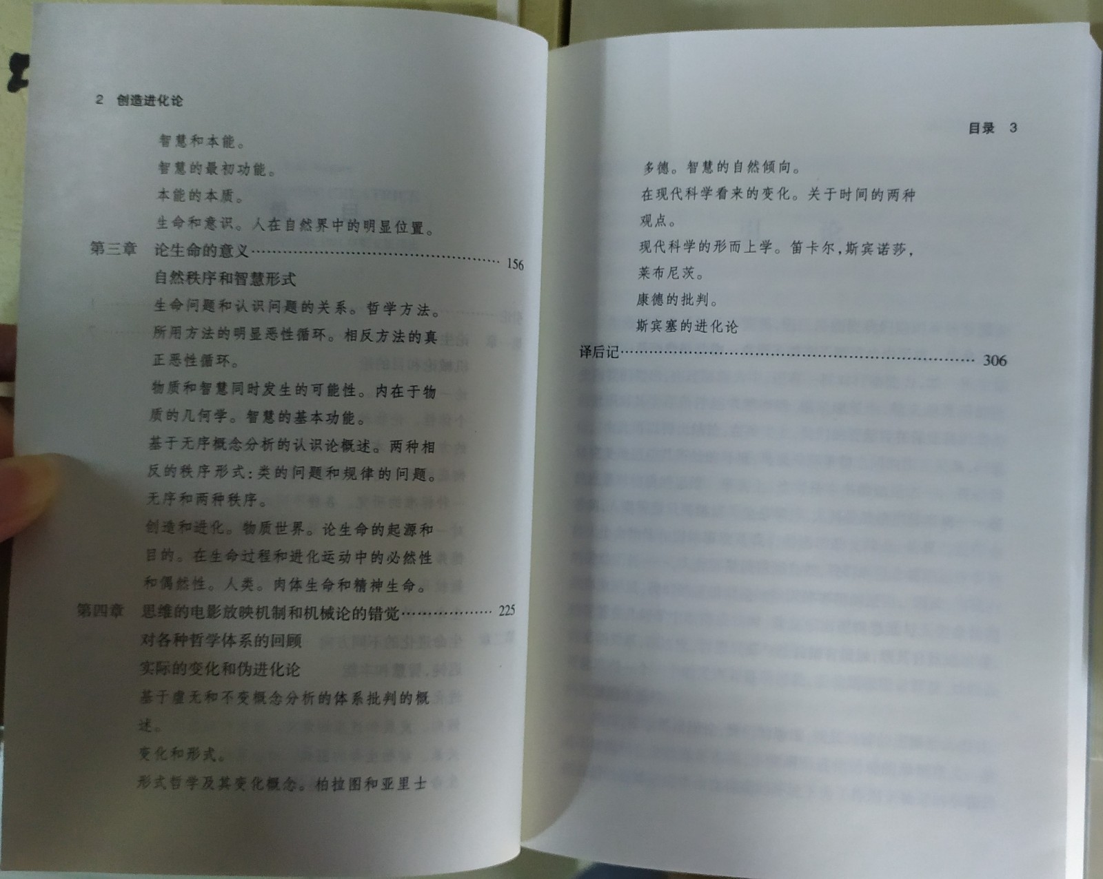 生命问题和认识问题的关系。哲学方法。所用方法的明显恶性循环。相反方法的真正恶性循环。物质和智慧同时发生的可能性。内在于物质的几何学。智慧的基本功能。基于无序概念分析的认识论概述。两种相反的秩序形式:类的问题和规律的问题。无序和两种秩序。创造和进化。物质世界。论生命的起源和目的。在生命过程和进化运动中的必然性和偶然性。人类。肉体生命和精神生命。