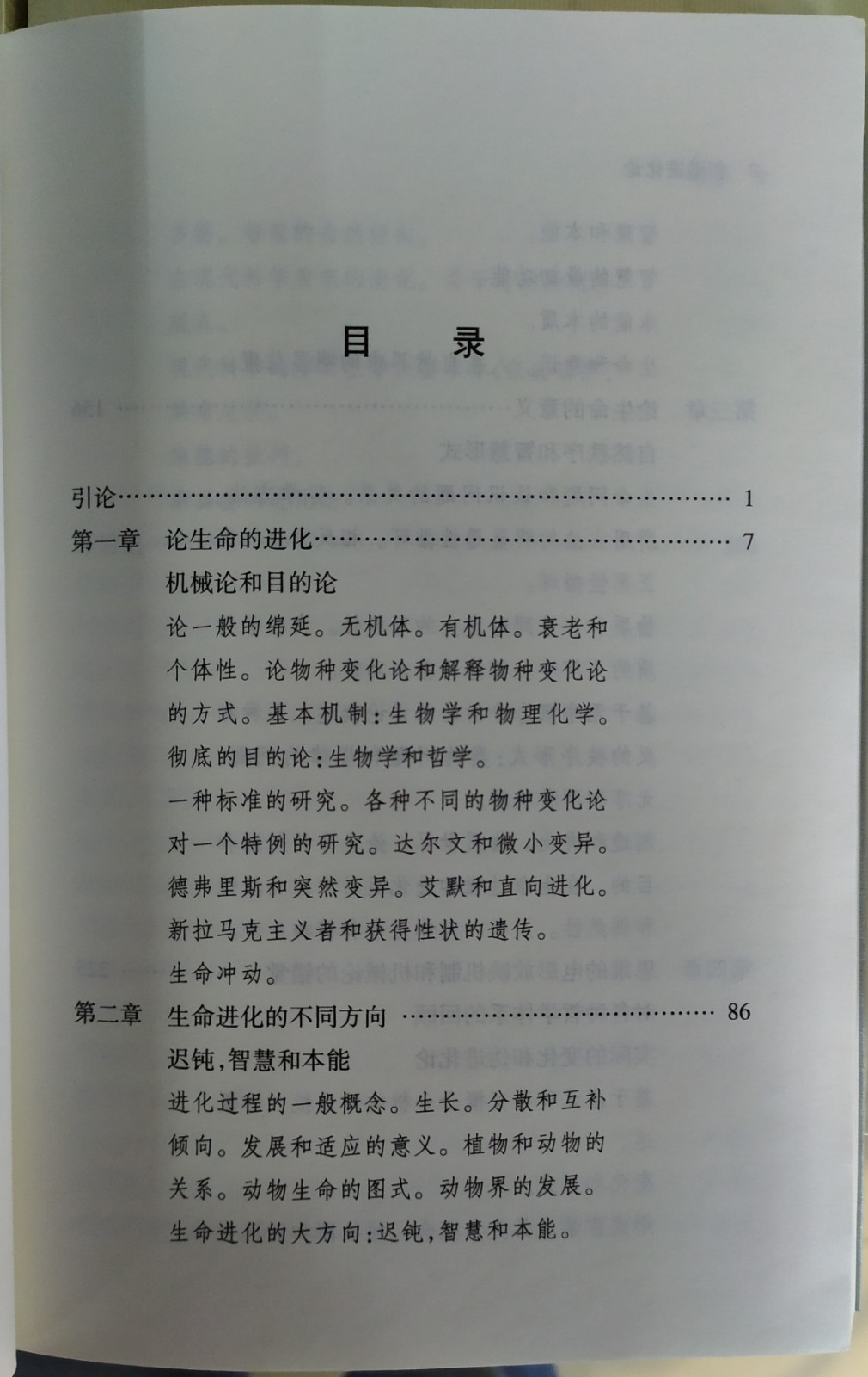 论一般的绵延。无机体。有机体。衰老和个体性。论物种变化论和解释物种变化论的方式。基本机制:生物学和物理化学。彻底的目的论:生物学和哲学。