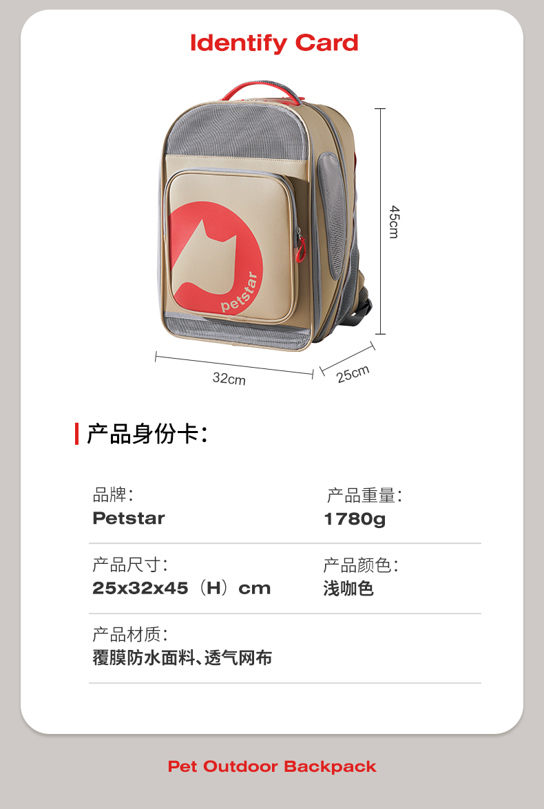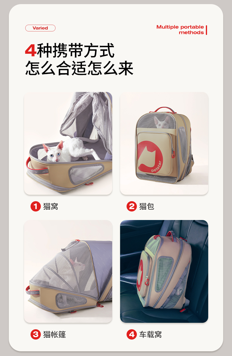 【Petstar 宠物双肩包】猫包透气外出包可拓展便携出行双肩手提包