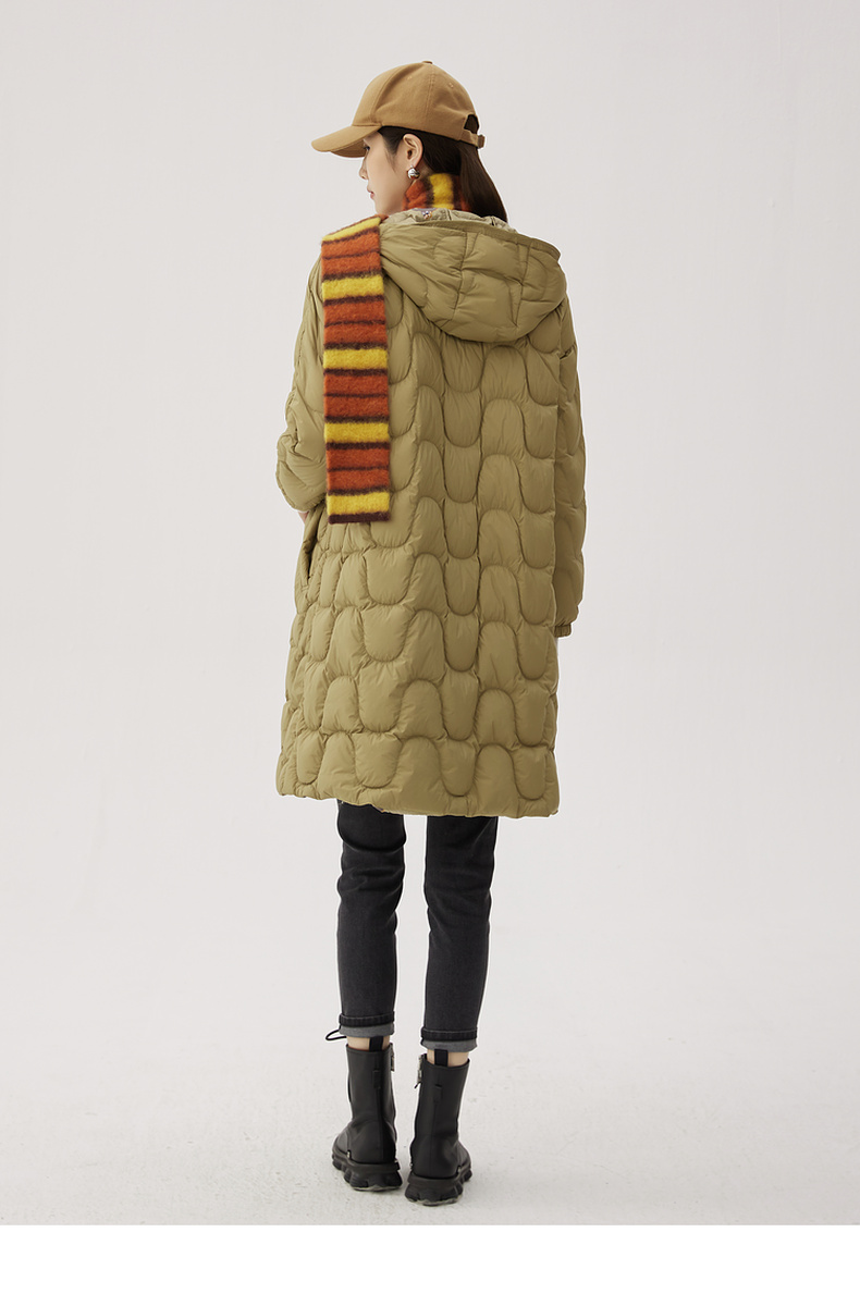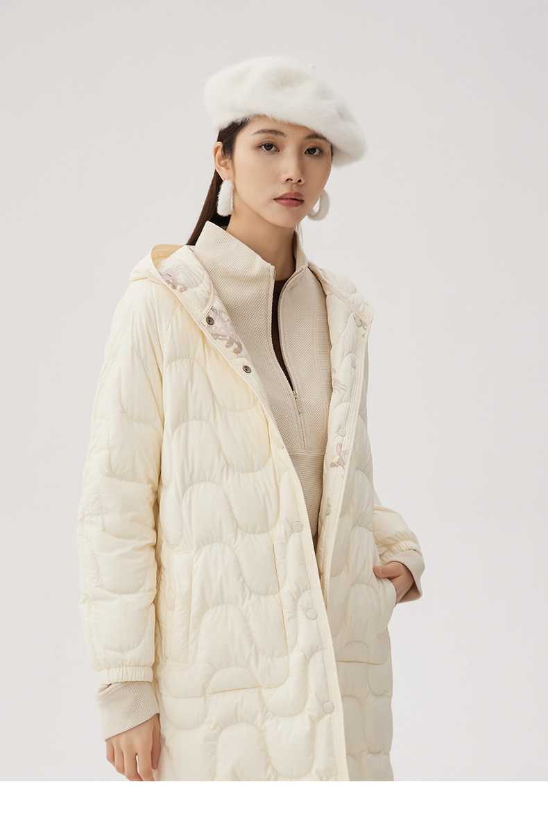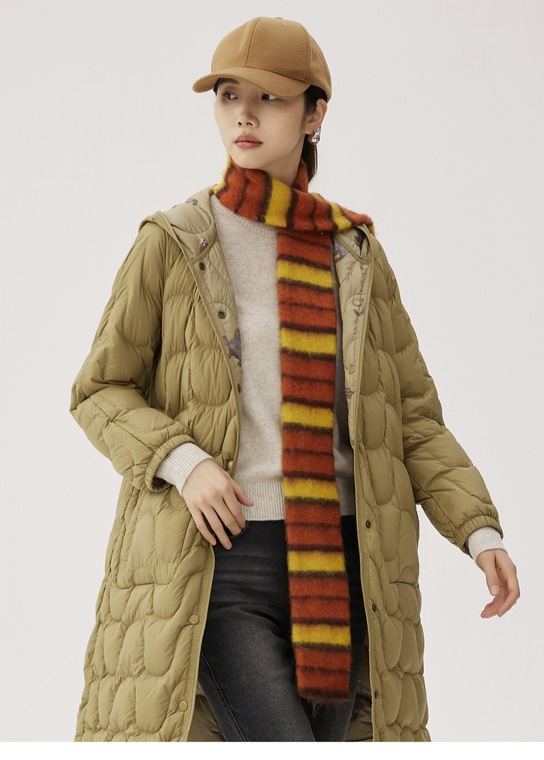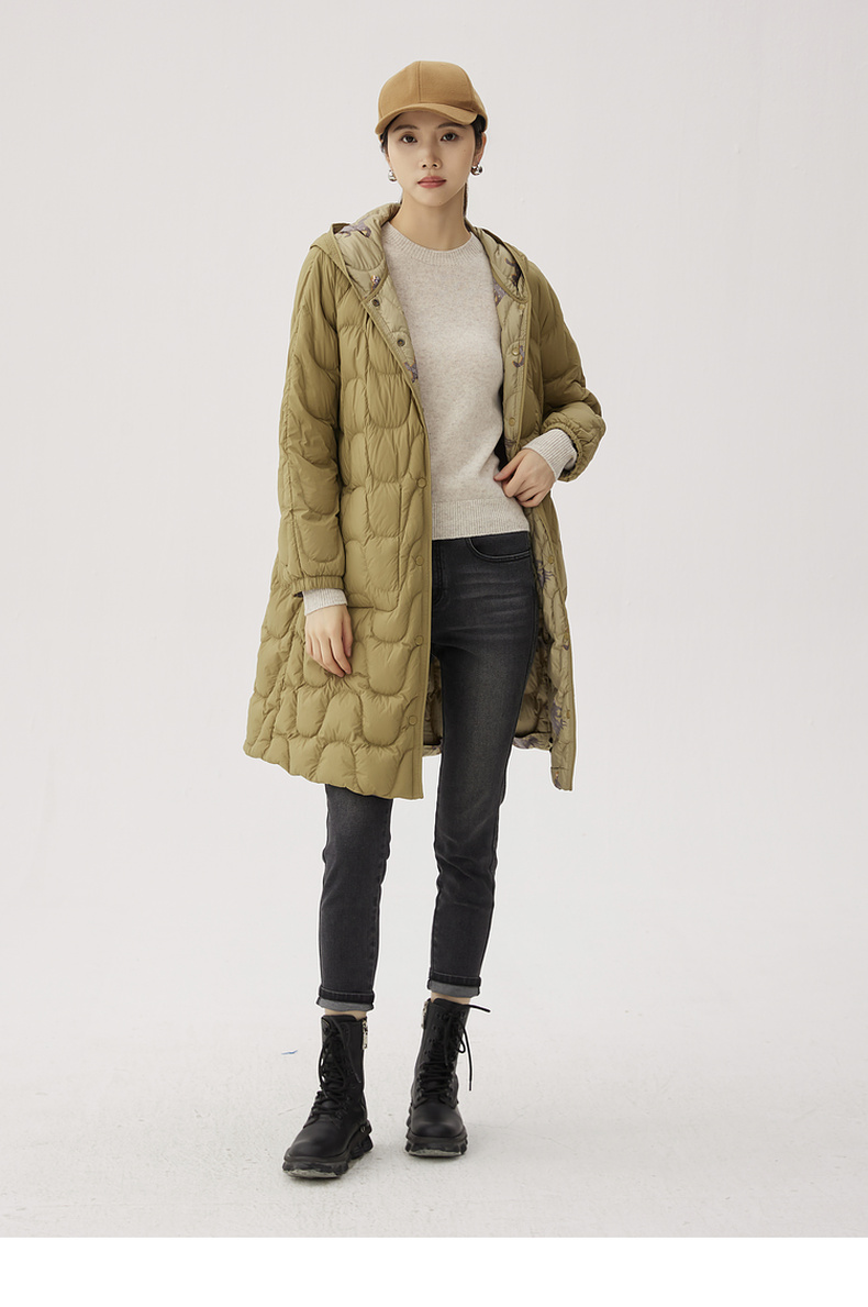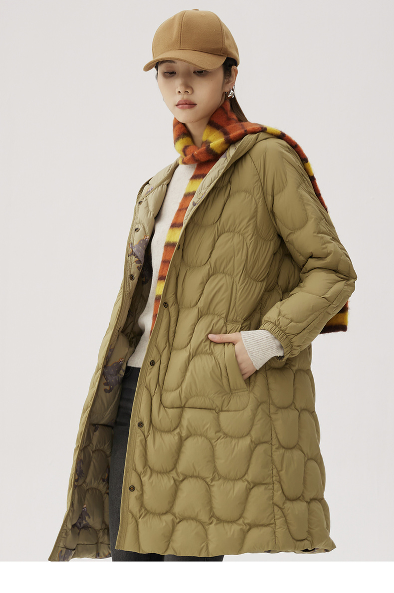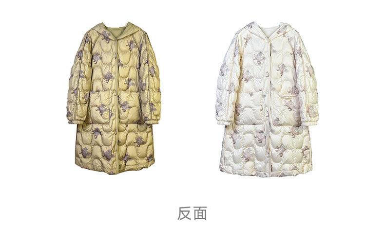 谜底两面穿羽绒服女2024秋款复古风花色连帽中长款鸭绒243MY1081