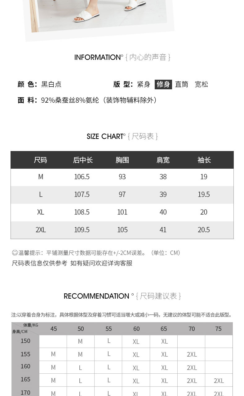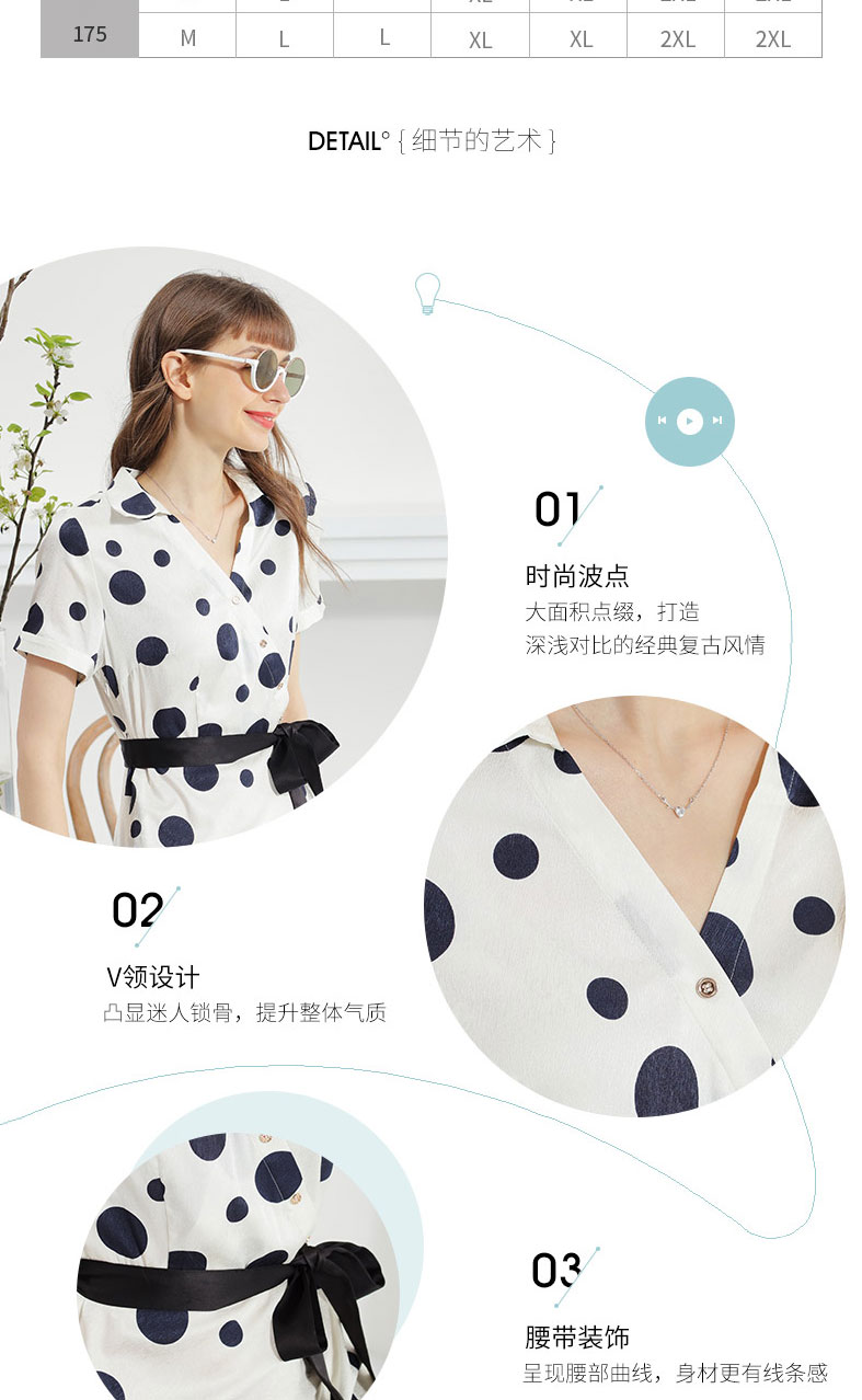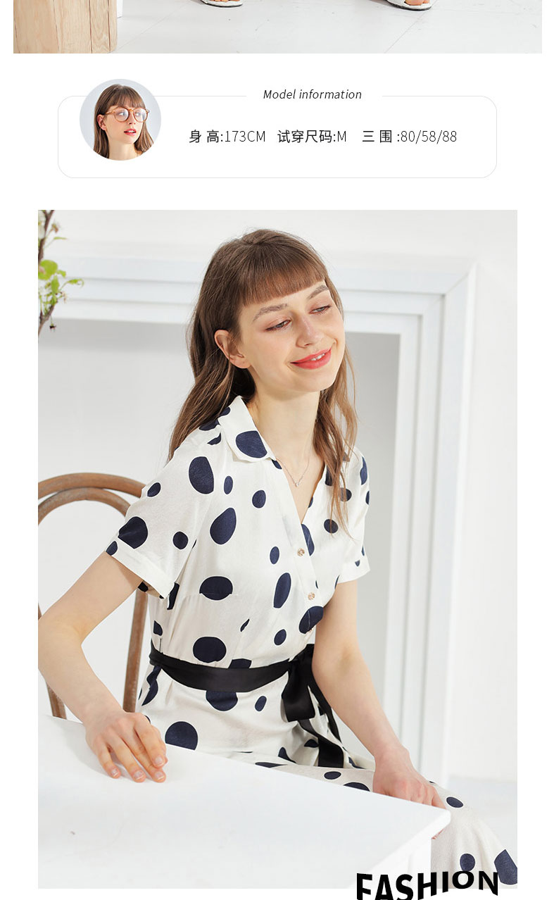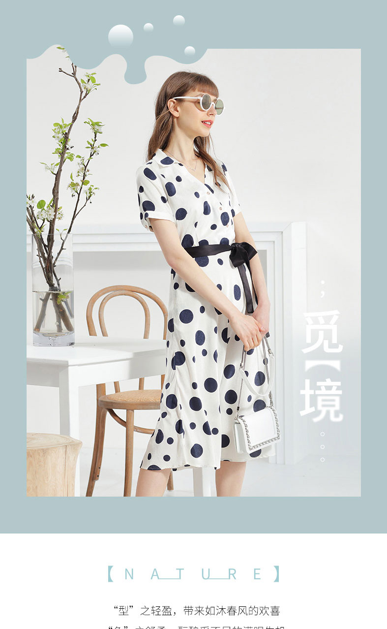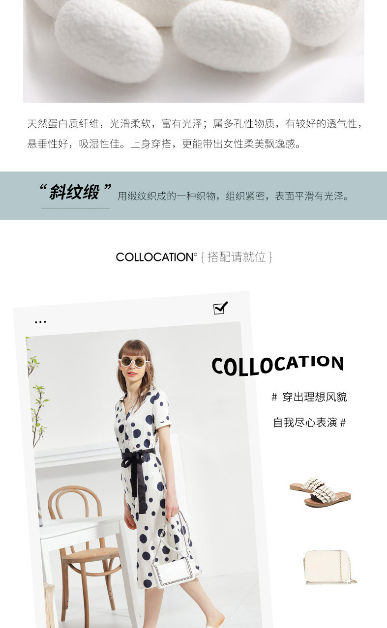科蒙博卡夏季新品真丝连衣裙女V领黑白波点腰带桑蚕丝长裙KXMT031005A1D