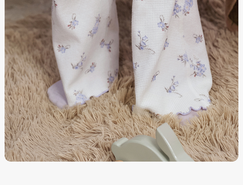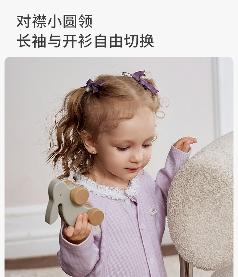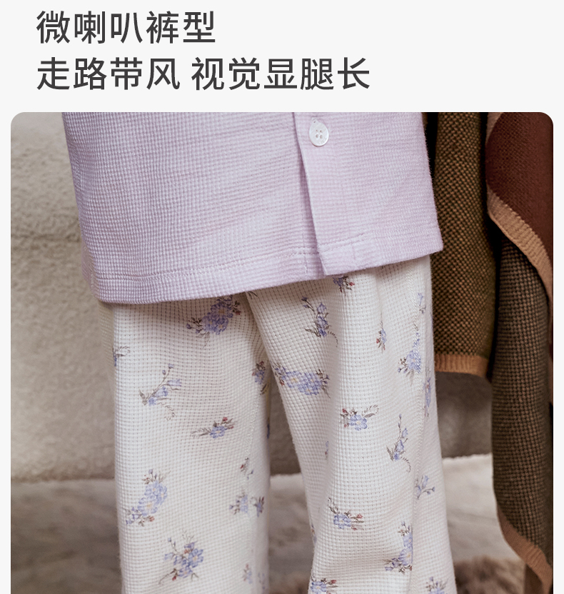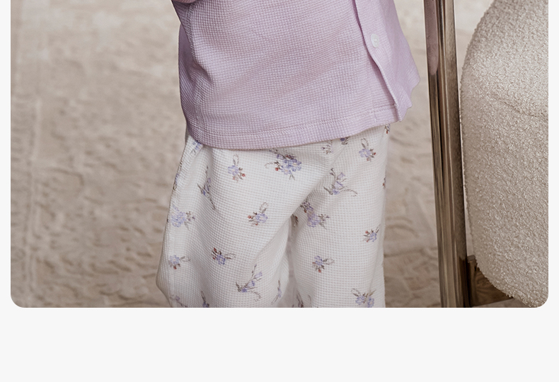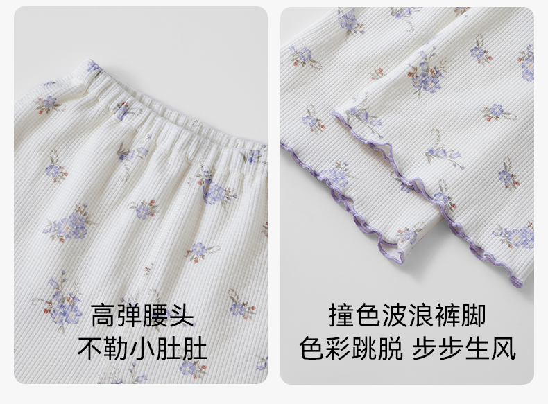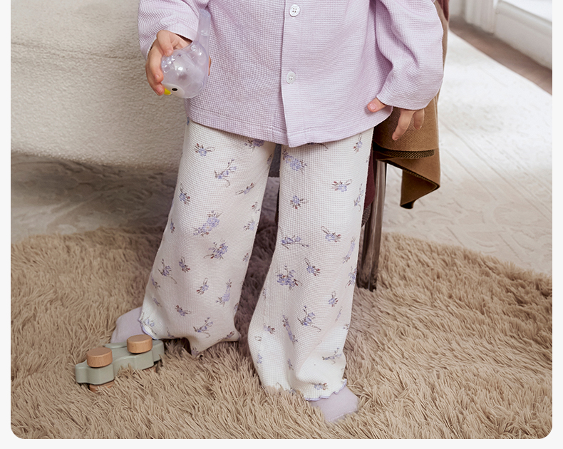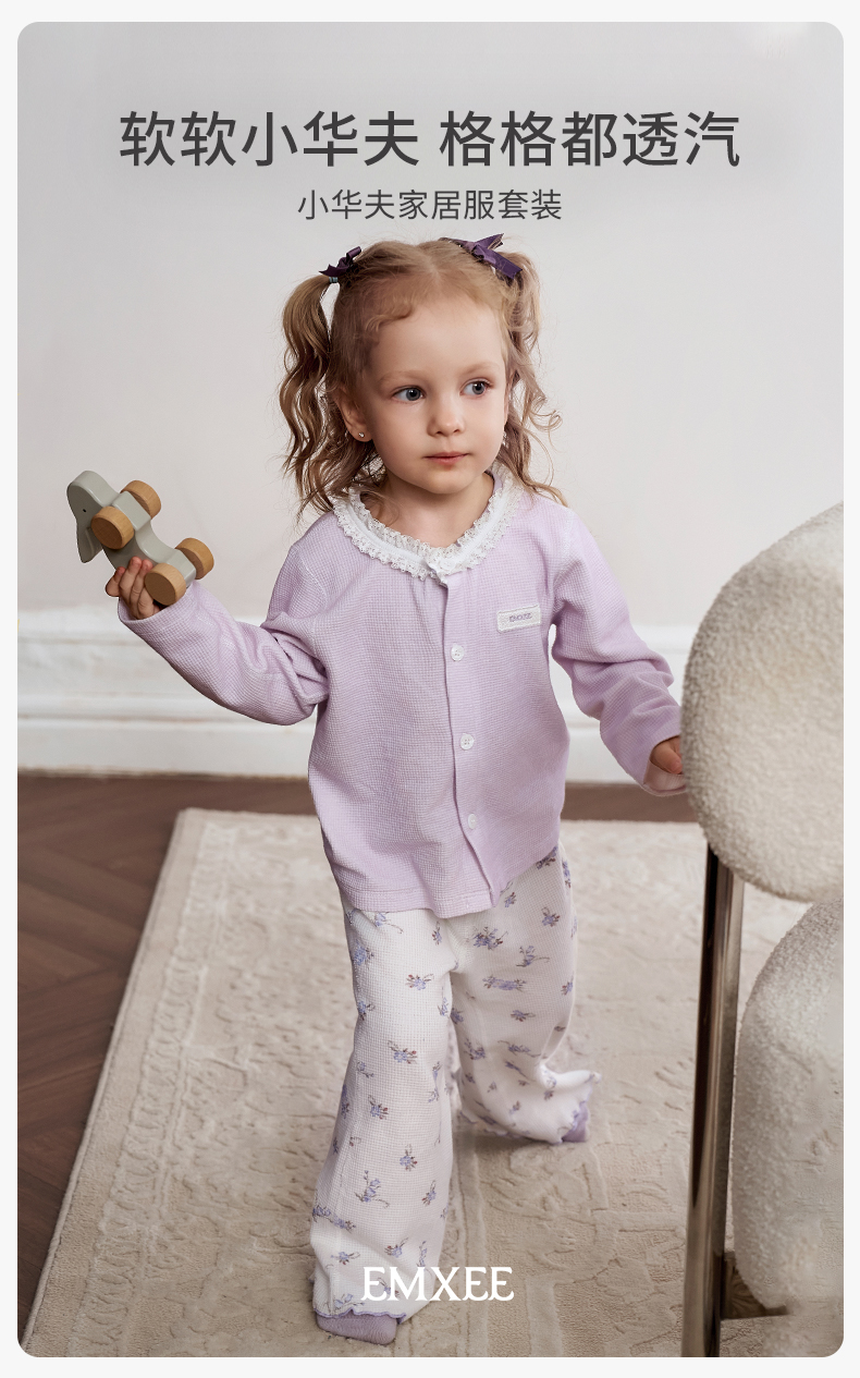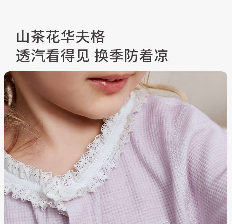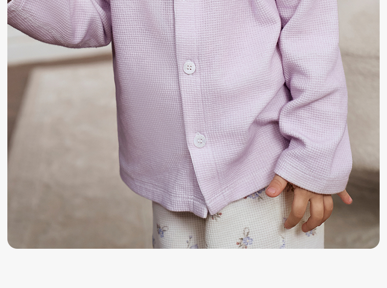 【宝宝服饰】嫚熙儿童家居服山茶花华夫格分体睡衣套装