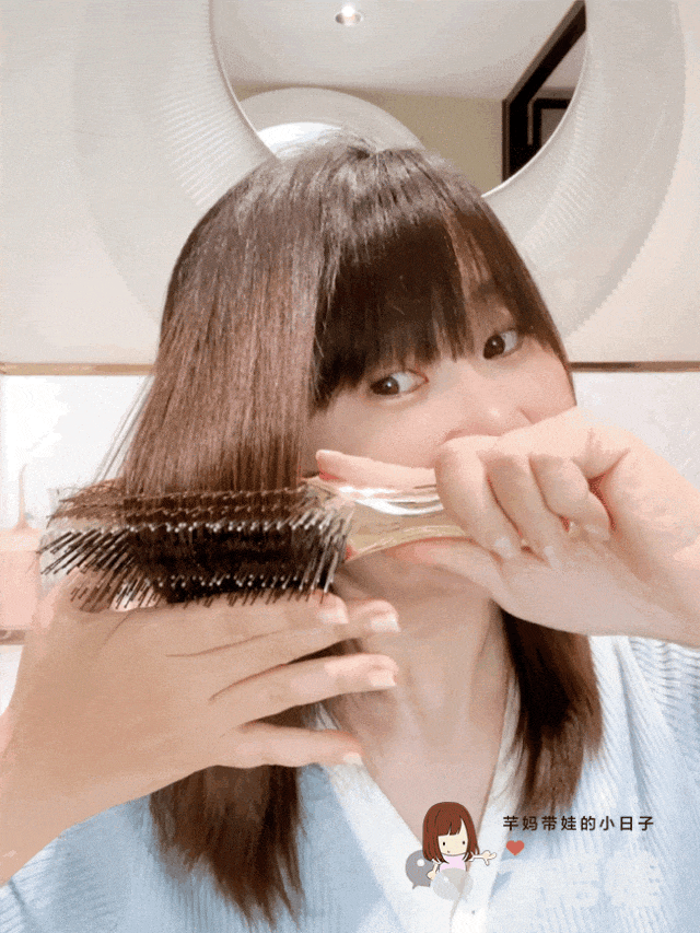 你看用它来梳头,毛躁缠在也一起的头发很容易通开