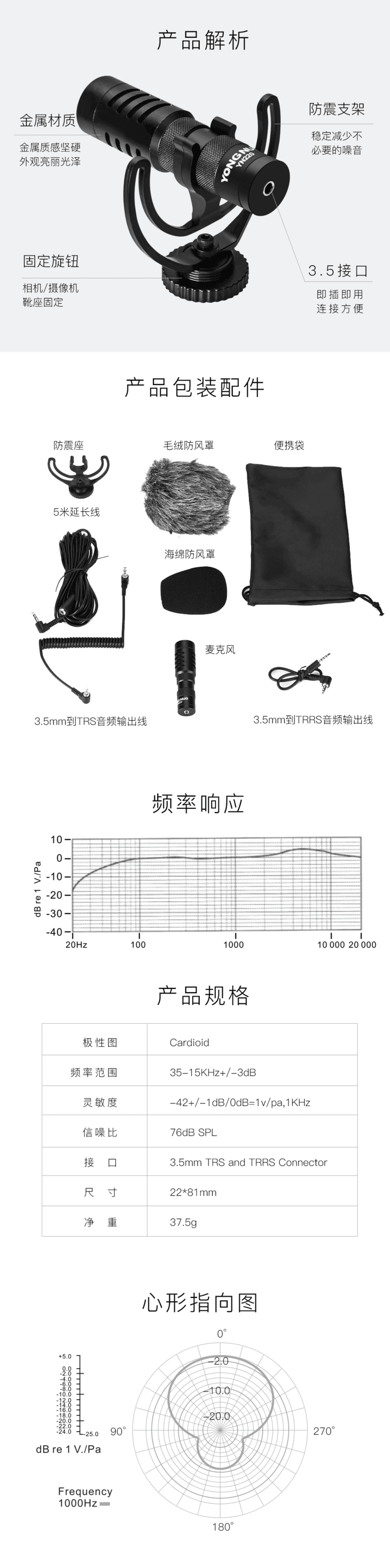 永诺 YN220专业录音心型麦克风手机单反相机直播采访收音音频设备