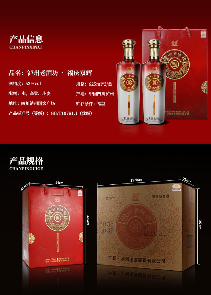 【泸州老窖酒名堂 打包一口价】52度 泸州老酒坊 福庆双辉 625ml*2