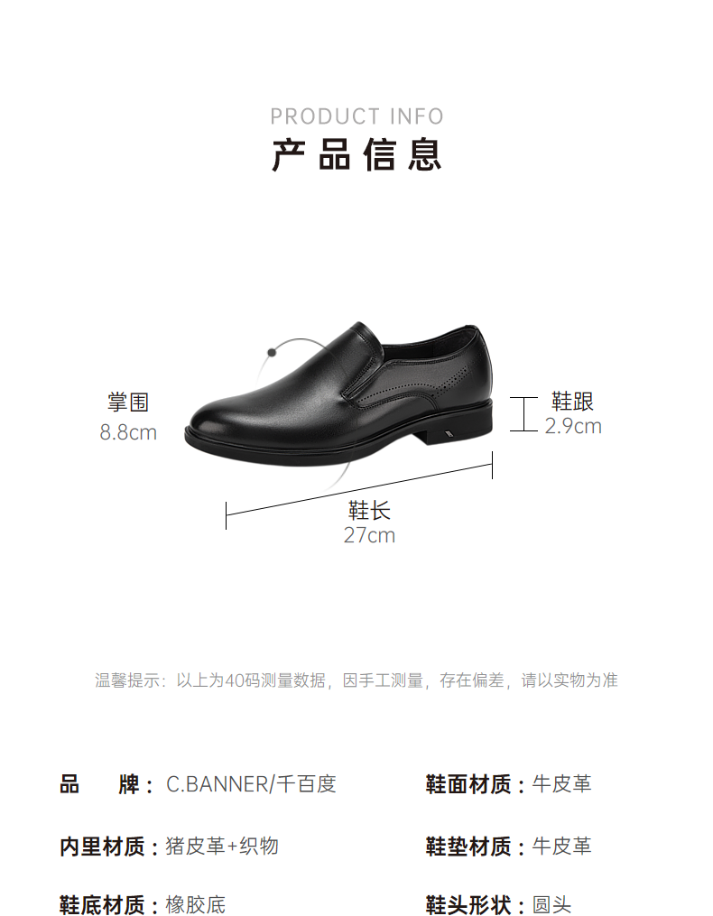 千百度男鞋夏季正装皮鞋休闲舒适真皮男鞋商务A24101723
