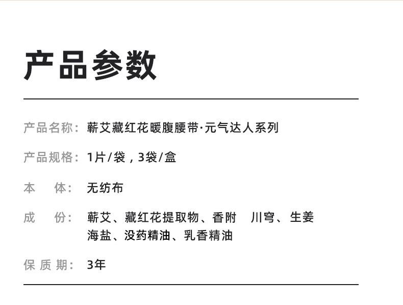 【自营】 元气达人 蕲艾热敷暖腰带 3片/盒 多规格