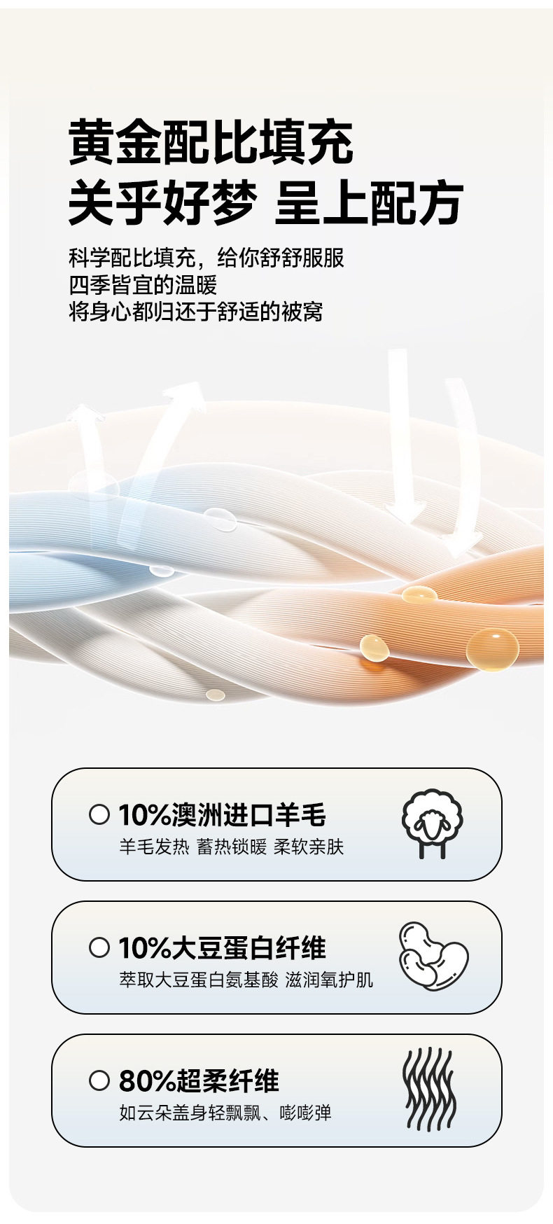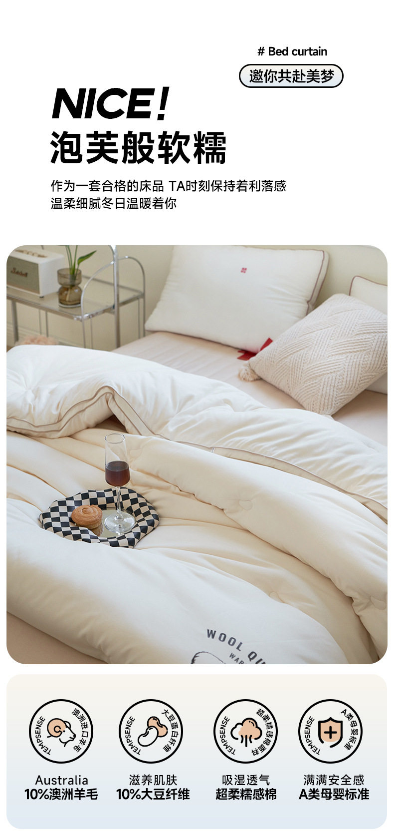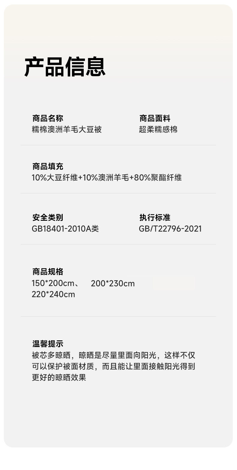 羊毛+大豆纤维混合被芯,面料柔软舒适,一款很不错的性价比被芯,放心使用,我们不出烂货。