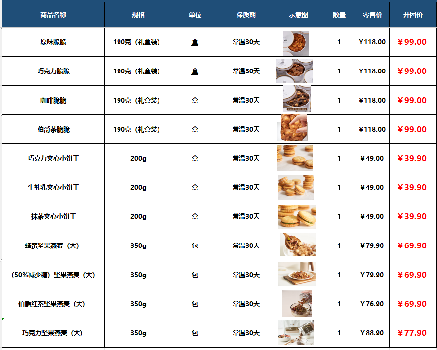 这次开团的有用料扎实坚果的燕麦脆;又薄又酥脆的饼底配上点睛的坚果粒,“皮薄馅大”的脆脆;好吃的燕麦片及小饼干等。