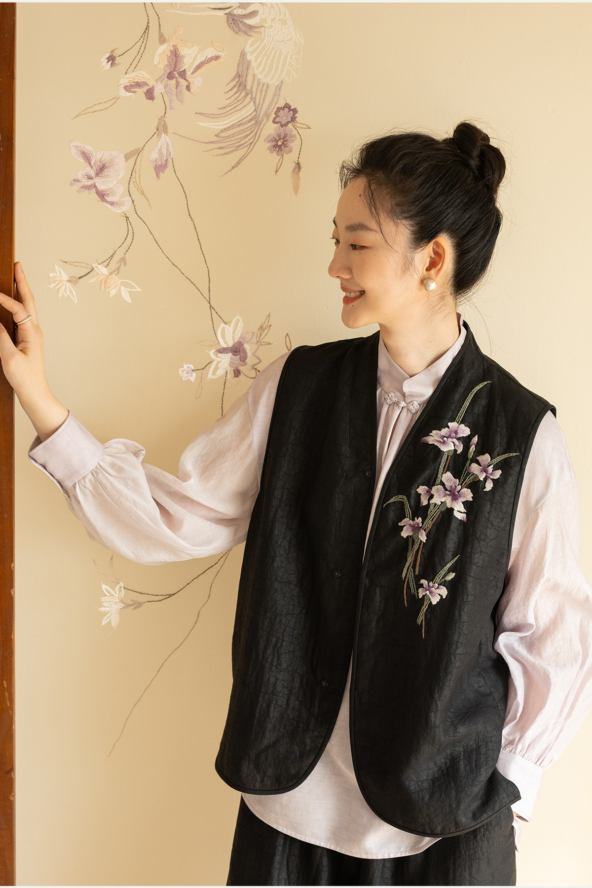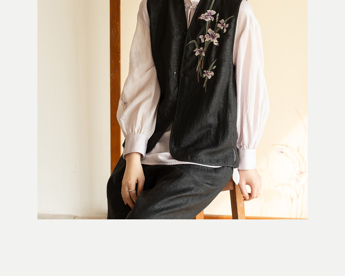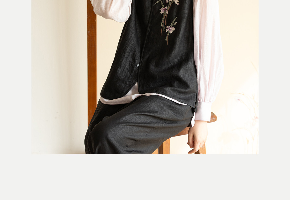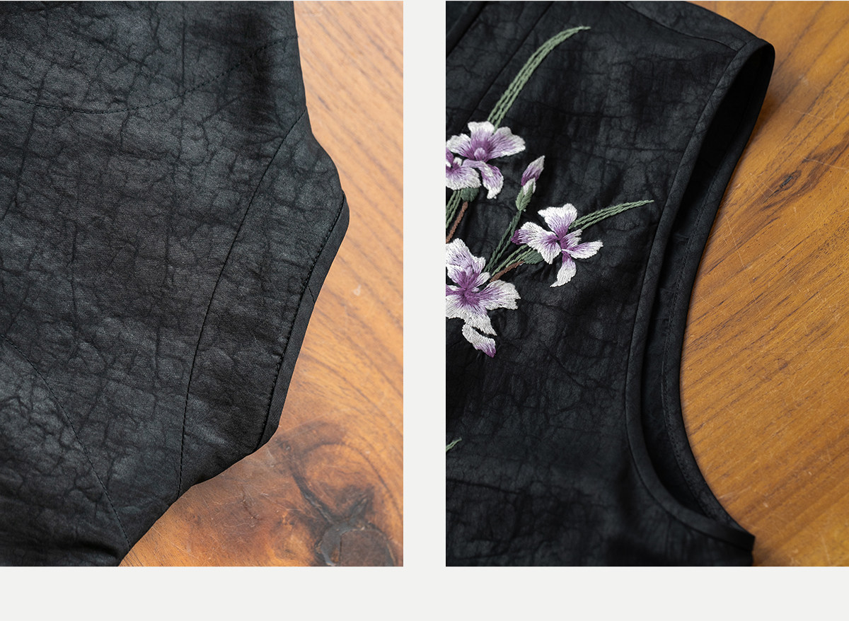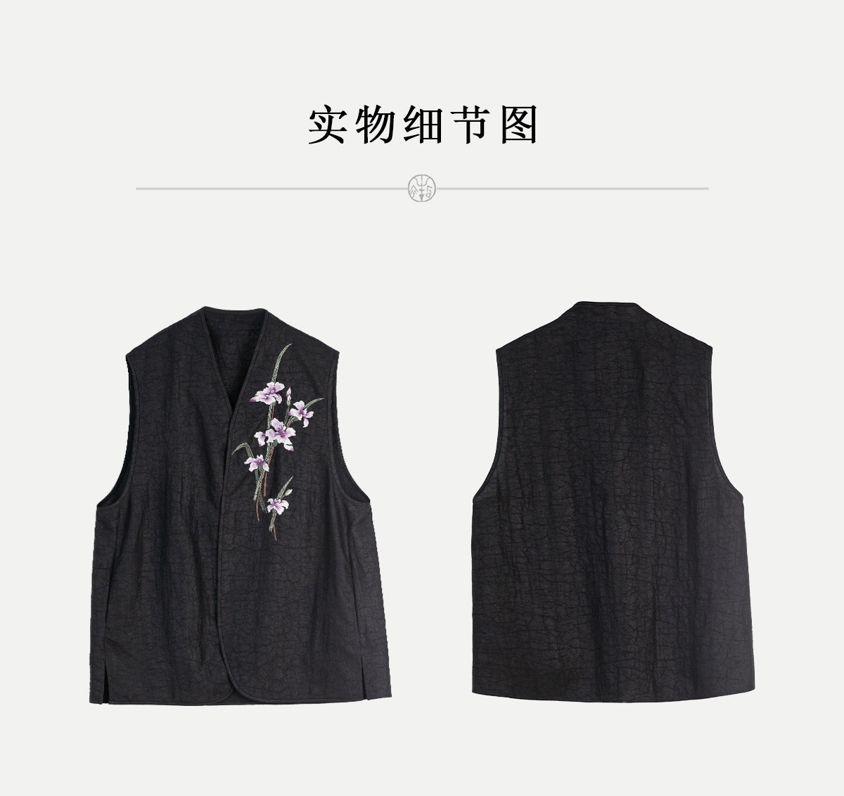 牧衣游原创 20姆米重磅龟纹手工刺绣香云纱马夹黑色古朴中式 栖行