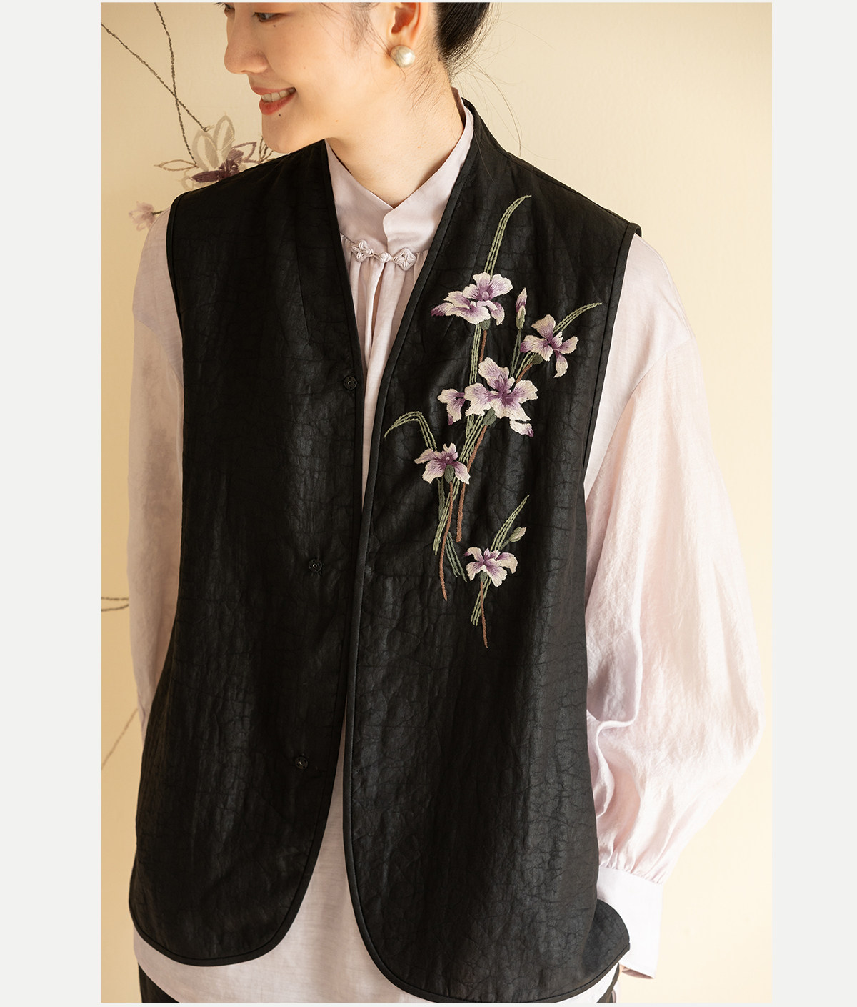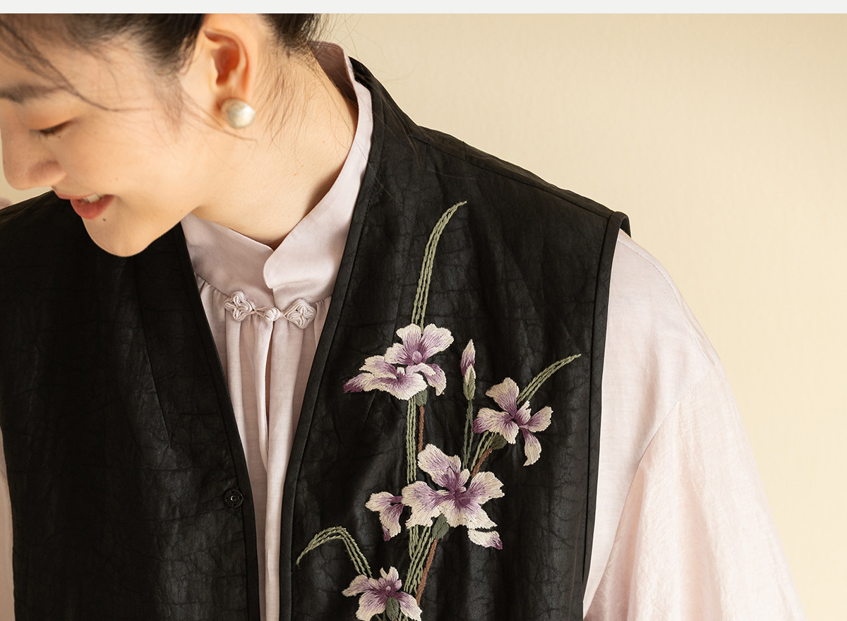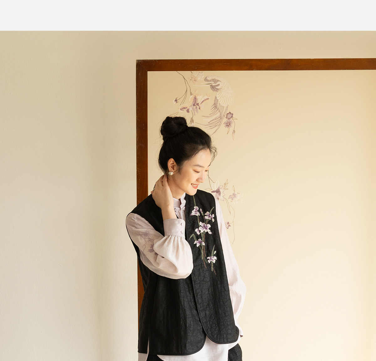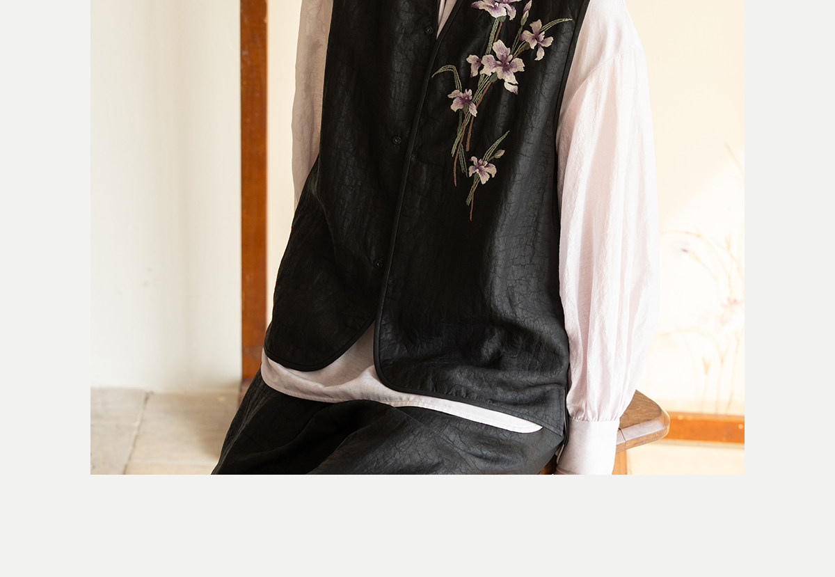 牧衣游原创 20姆米重磅龟纹手工刺绣香云纱马夹黑色古朴中式 栖行