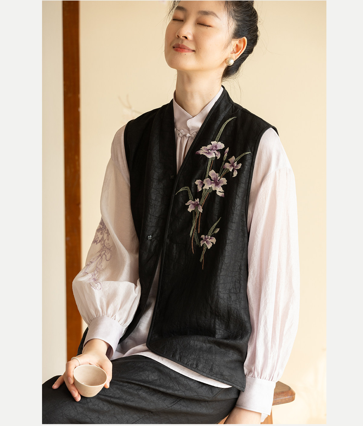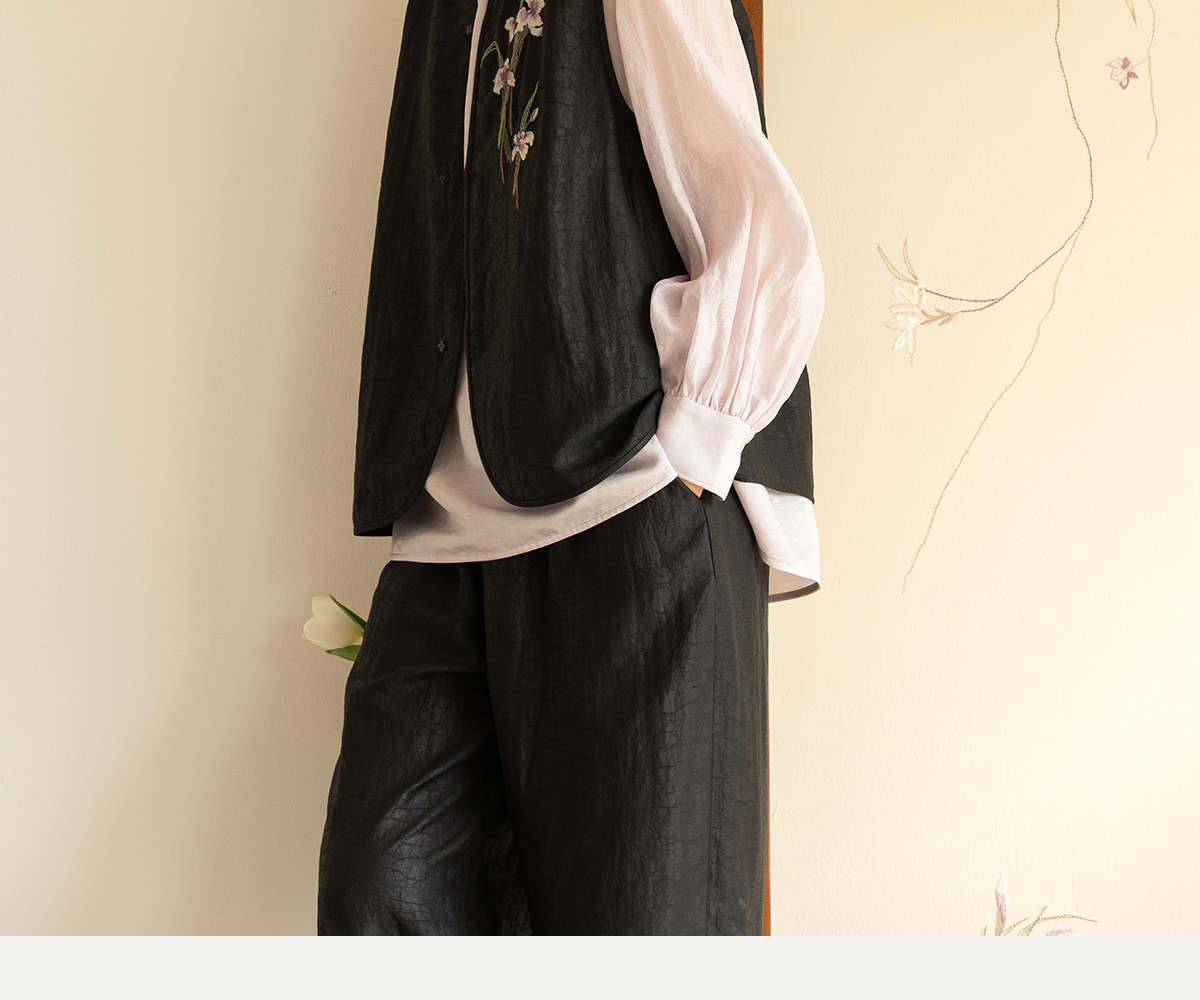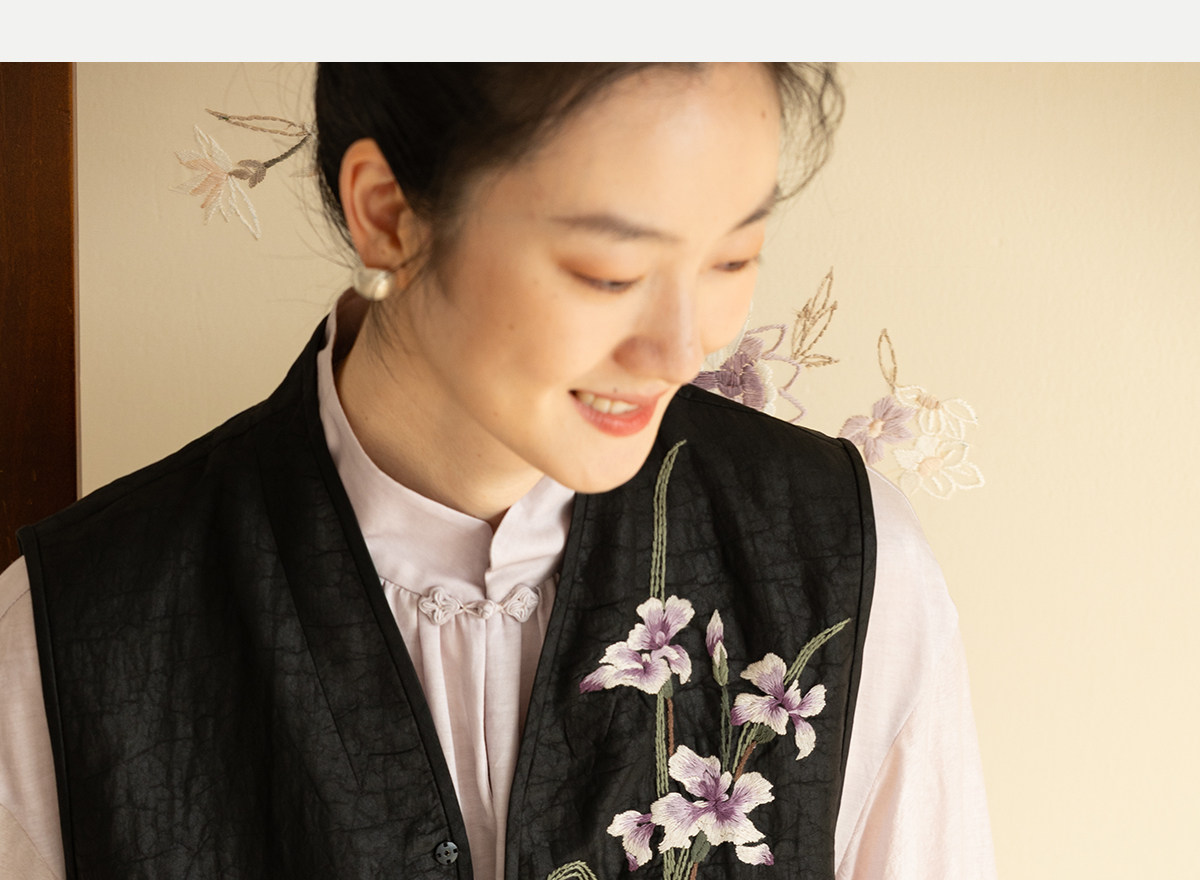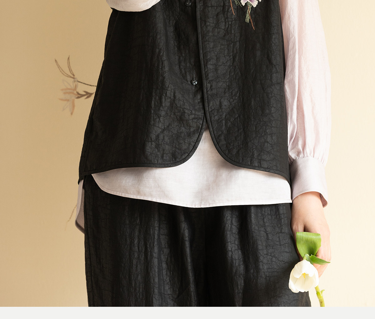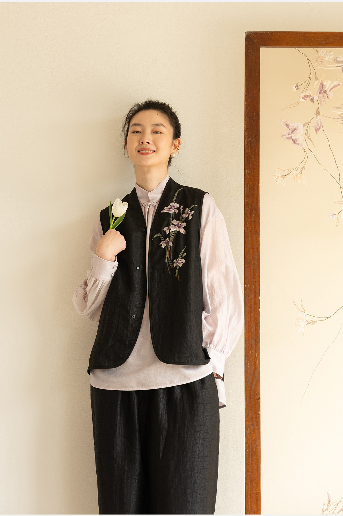 牧衣游原创 20姆米重磅龟纹手工刺绣香云纱马夹黑色古朴中式 栖行