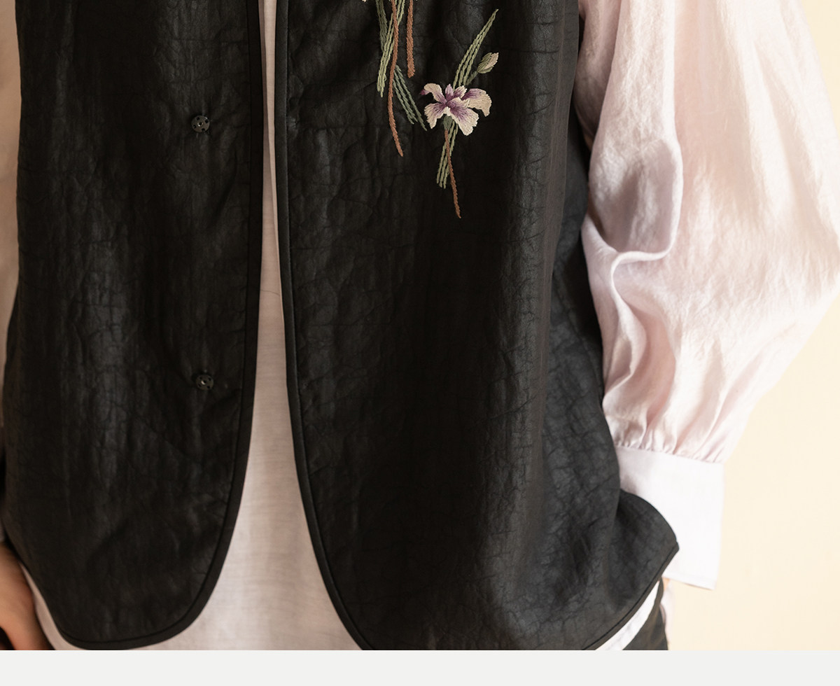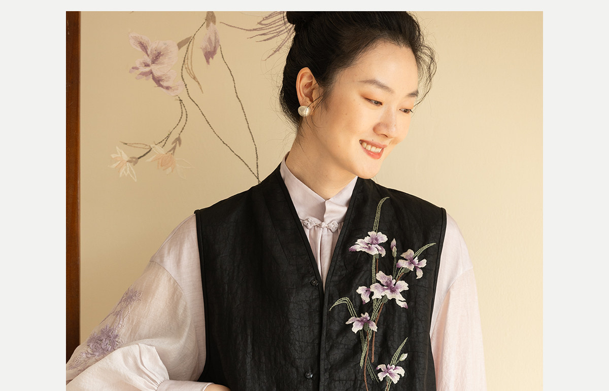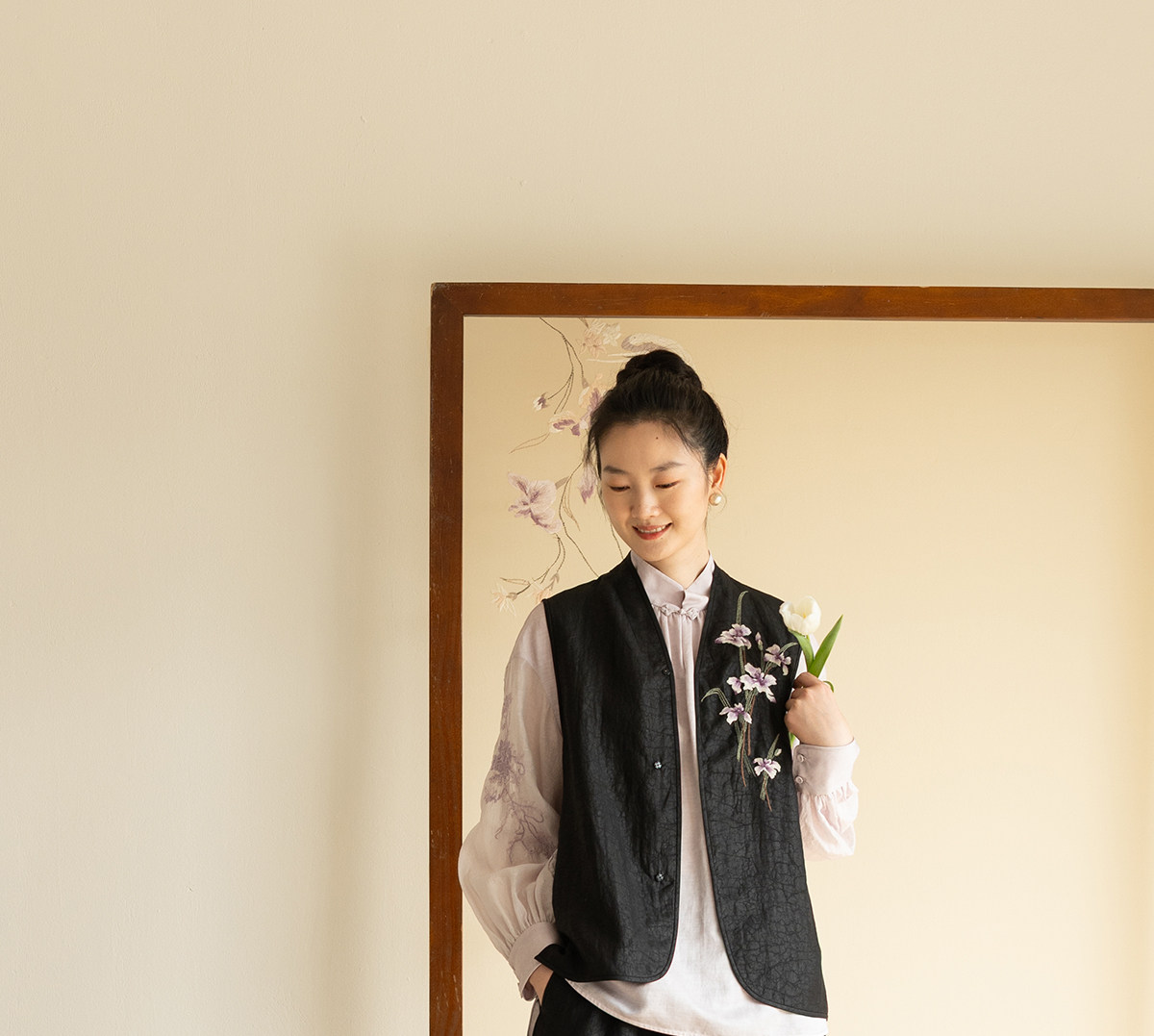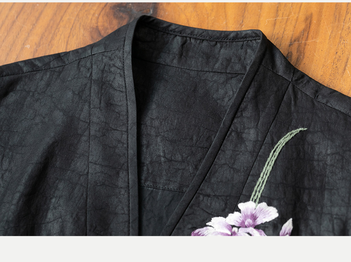 牧衣游原创 20姆米重磅龟纹手工刺绣香云纱马夹黑色古朴中式 栖行
