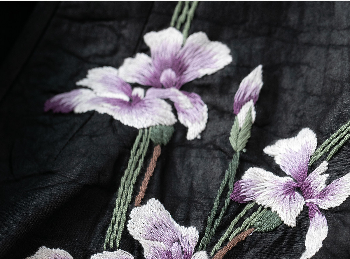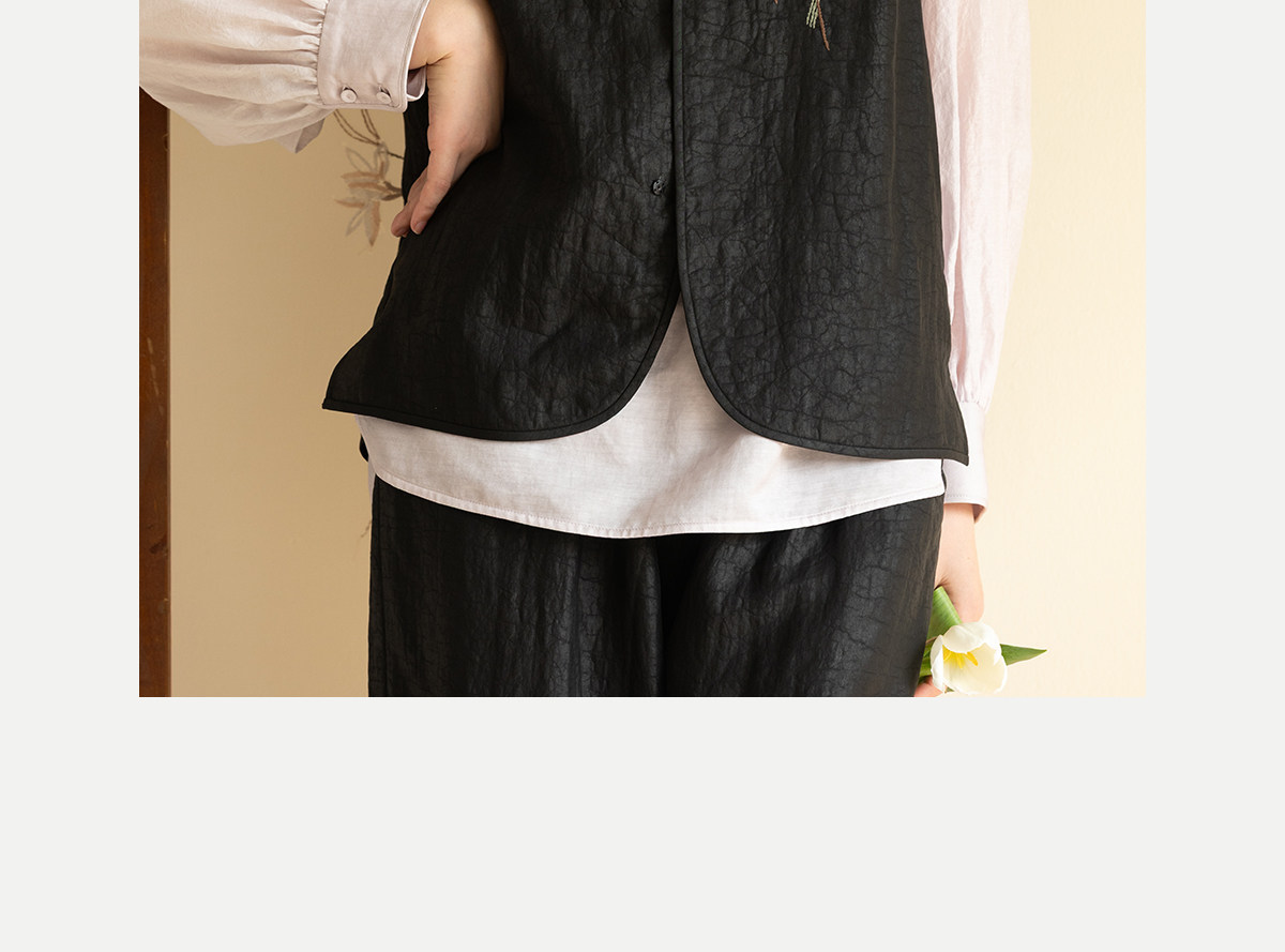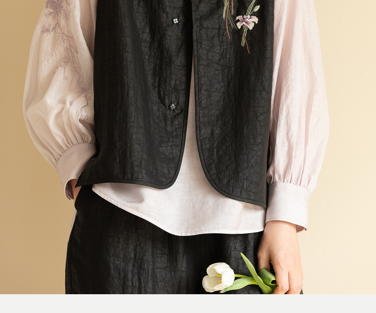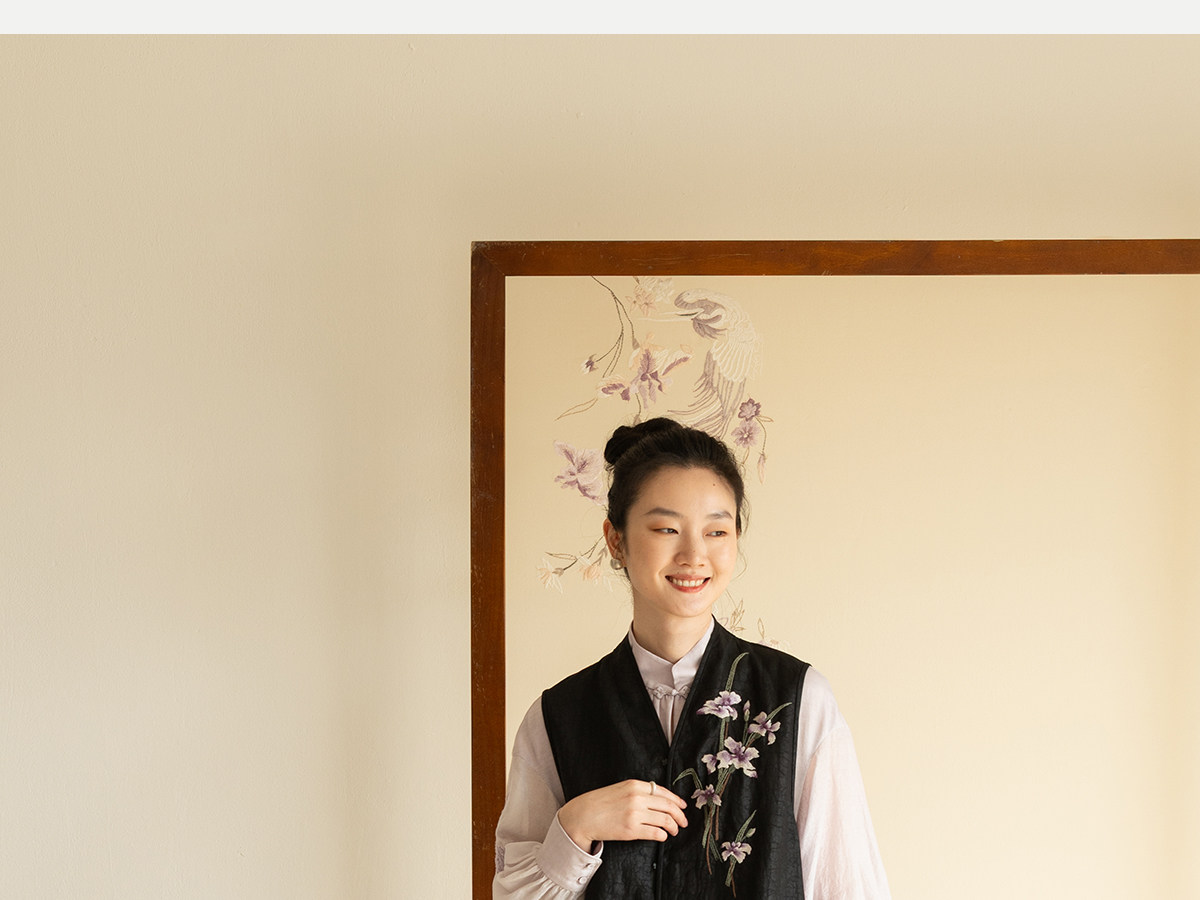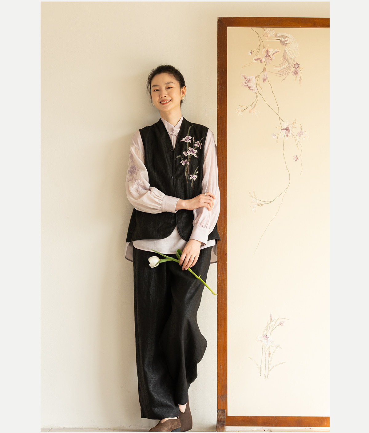 牧衣游原创 20姆米重磅龟纹手工刺绣香云纱马夹黑色古朴中式 栖行