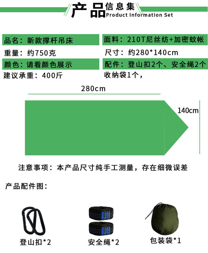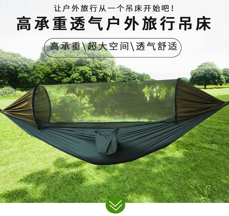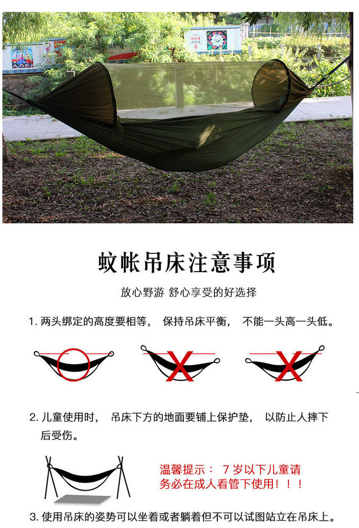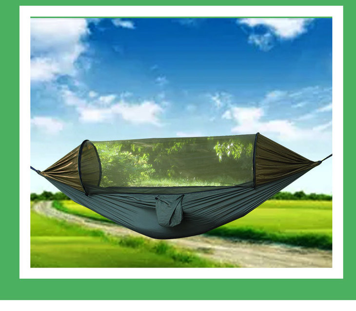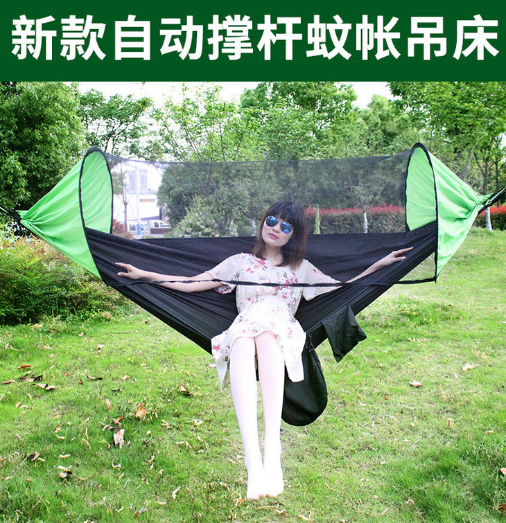 【帐篷】落伞布自动速开帐篷型户外野营蚊帐吊床防蚊吊床带撑杆蚊帐