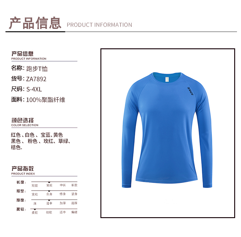 010男女同款 ZXUV120g秋季男女款插肩袖长袖方格跑步健身运动圆领T恤