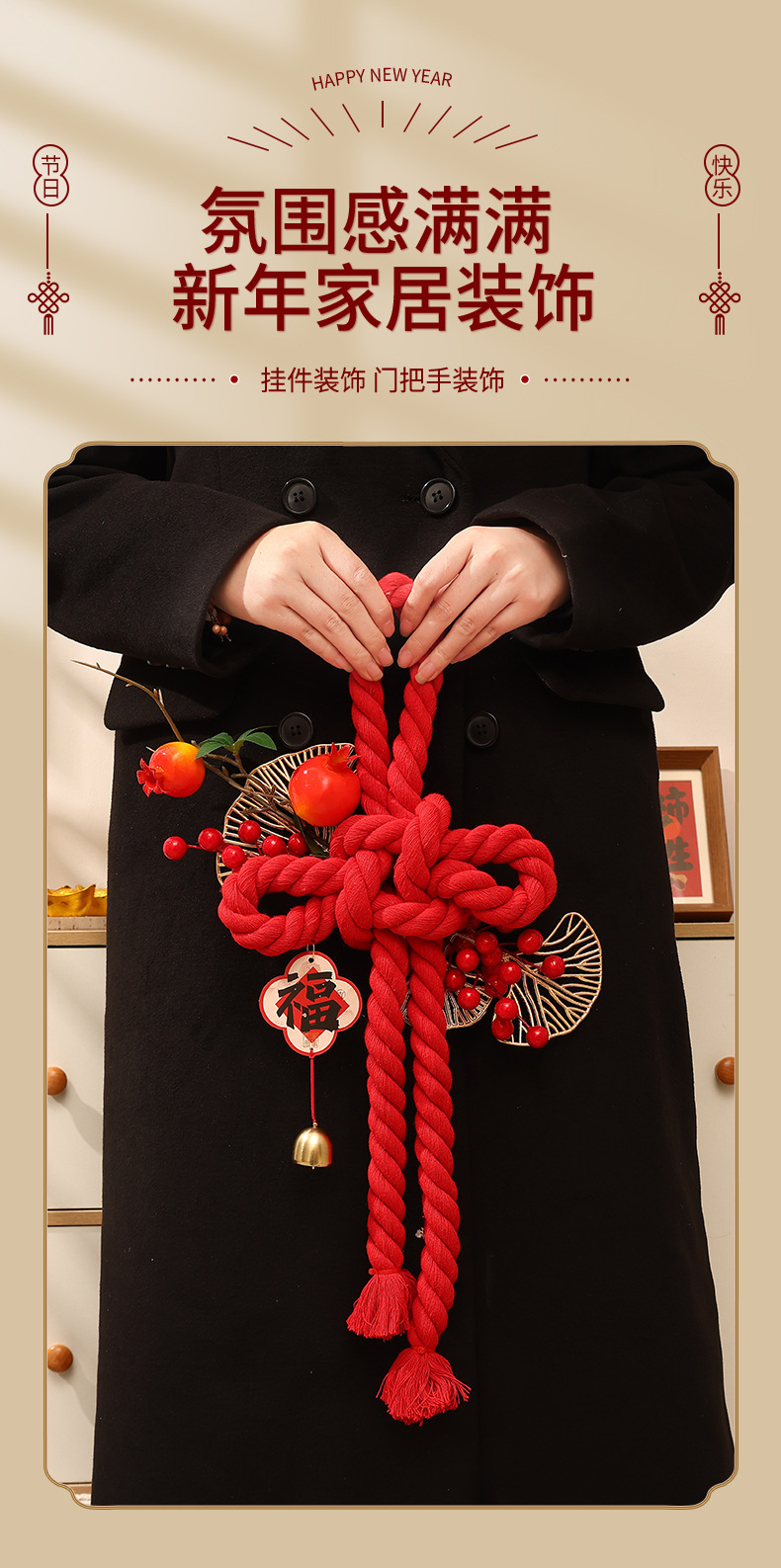 2026马年新年装饰挂件入户门万字结挂饰过年春节元旦氛围场景布置