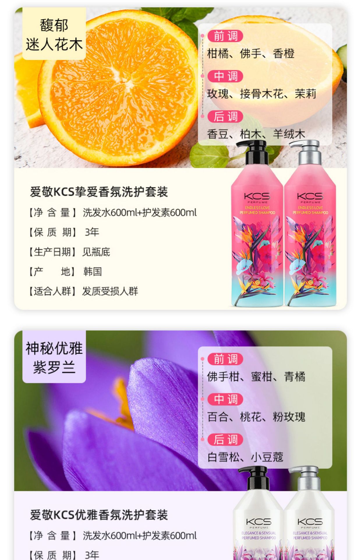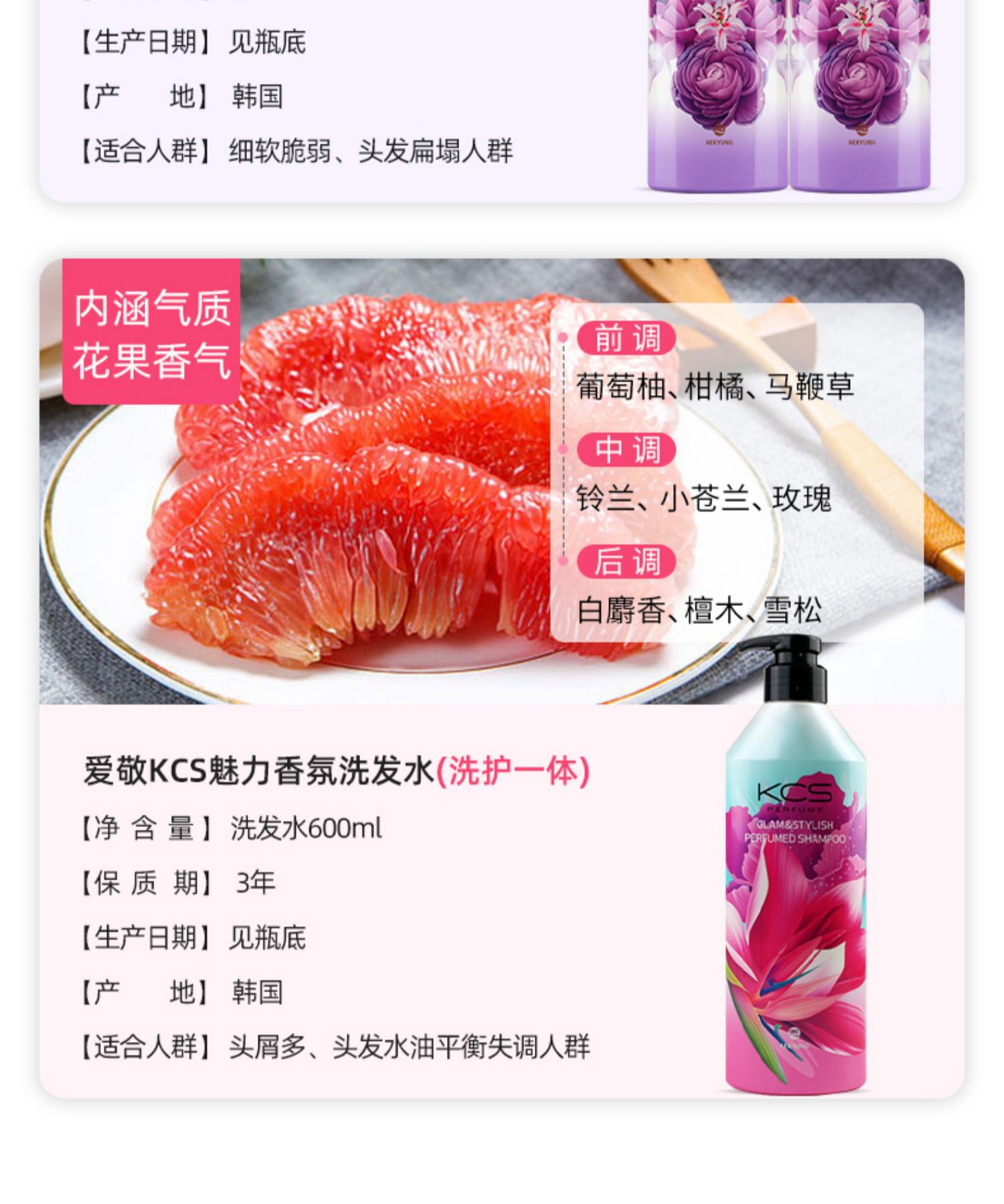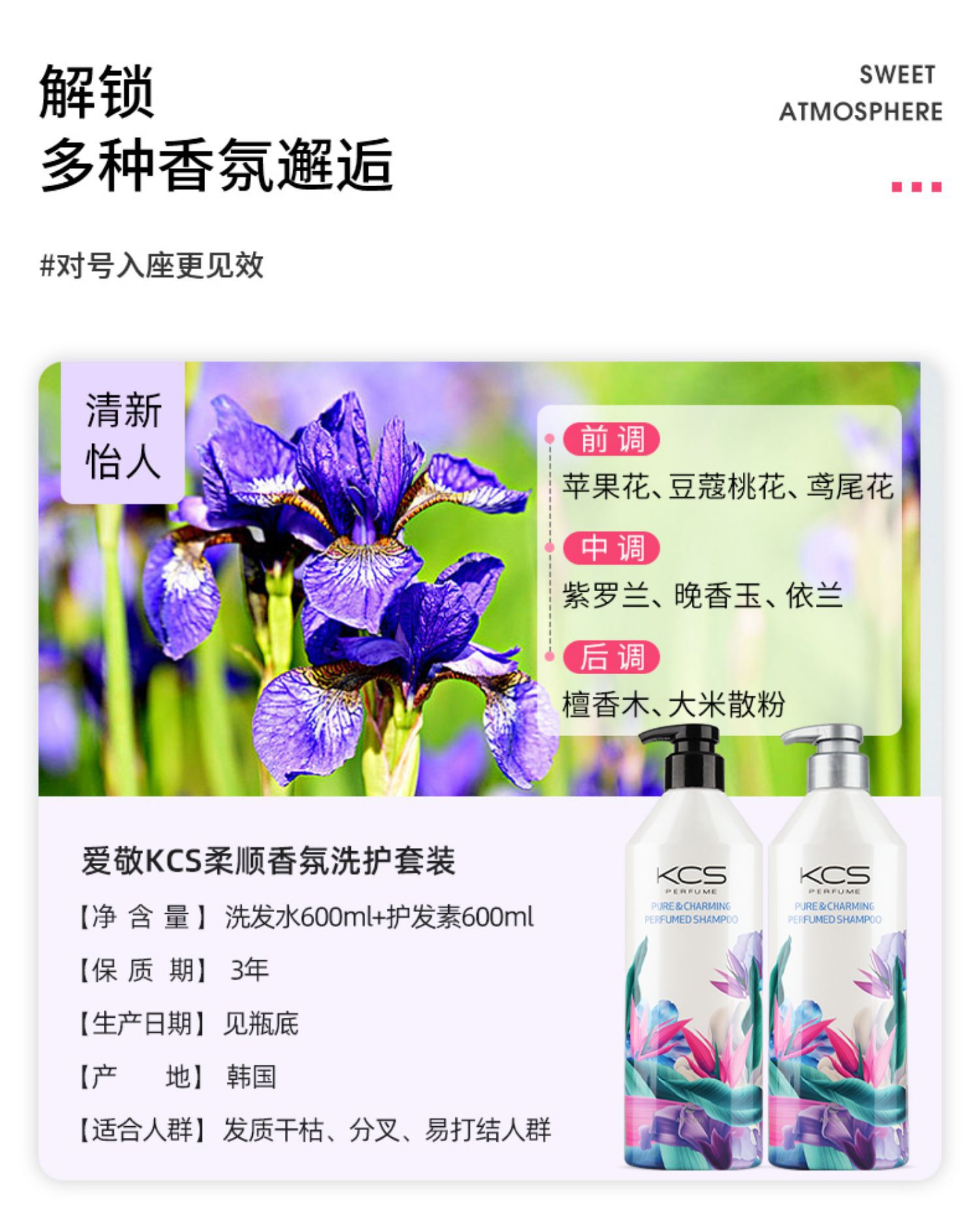 爱敬KCS可希丝花香洗发水护发素韩国进口香水洗发露去头屑控油