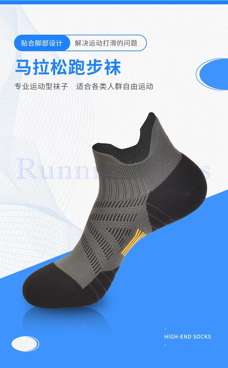 专业跑步马拉松压力袜户外健身运动袜成人薄款毛巾底透气吸汗短袜男女同款