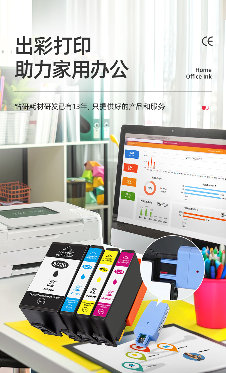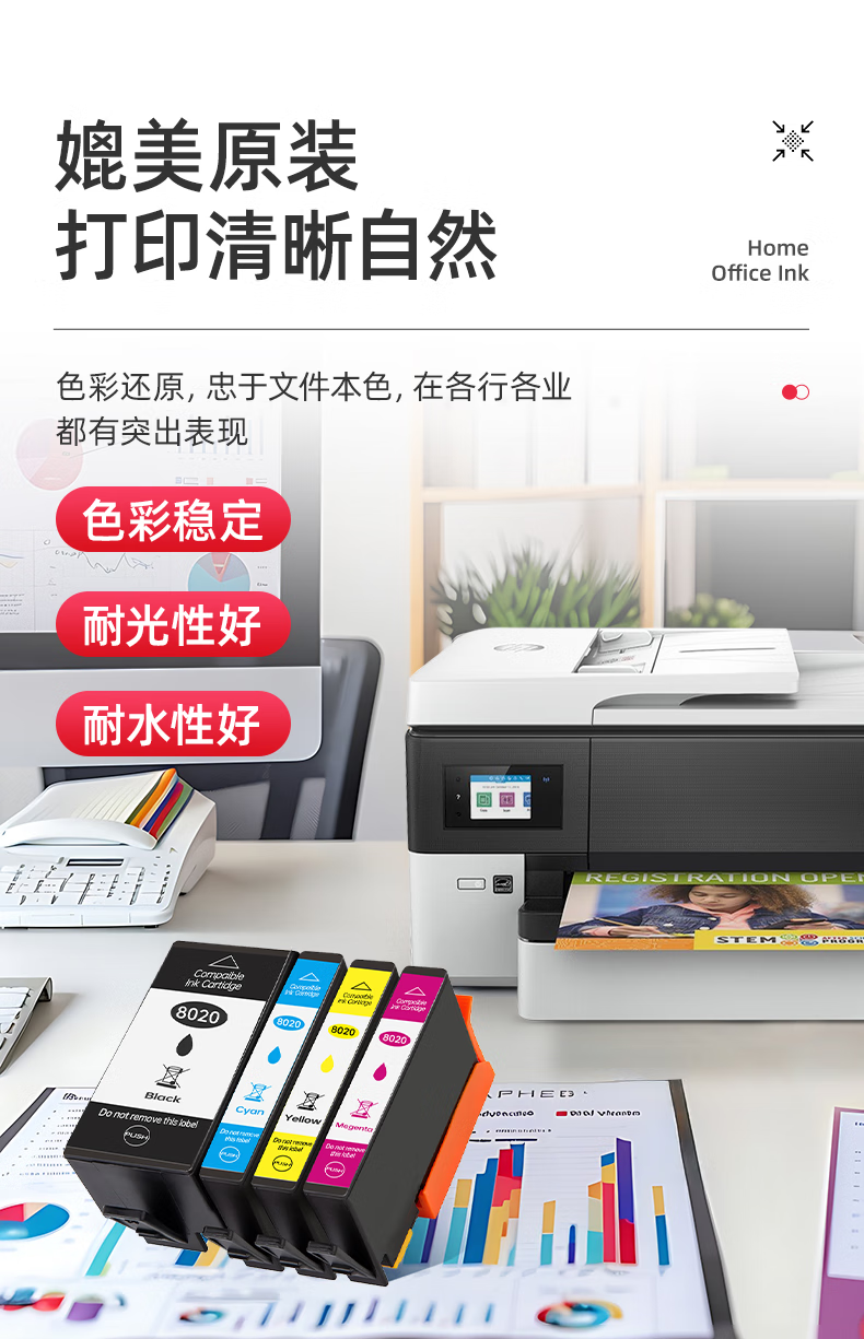 绘威915XL墨盒 适用惠普8020墨盒8010 8018 8025 8028 hp officejet pro 8020打印机墨盒915墨盒【四色套装】