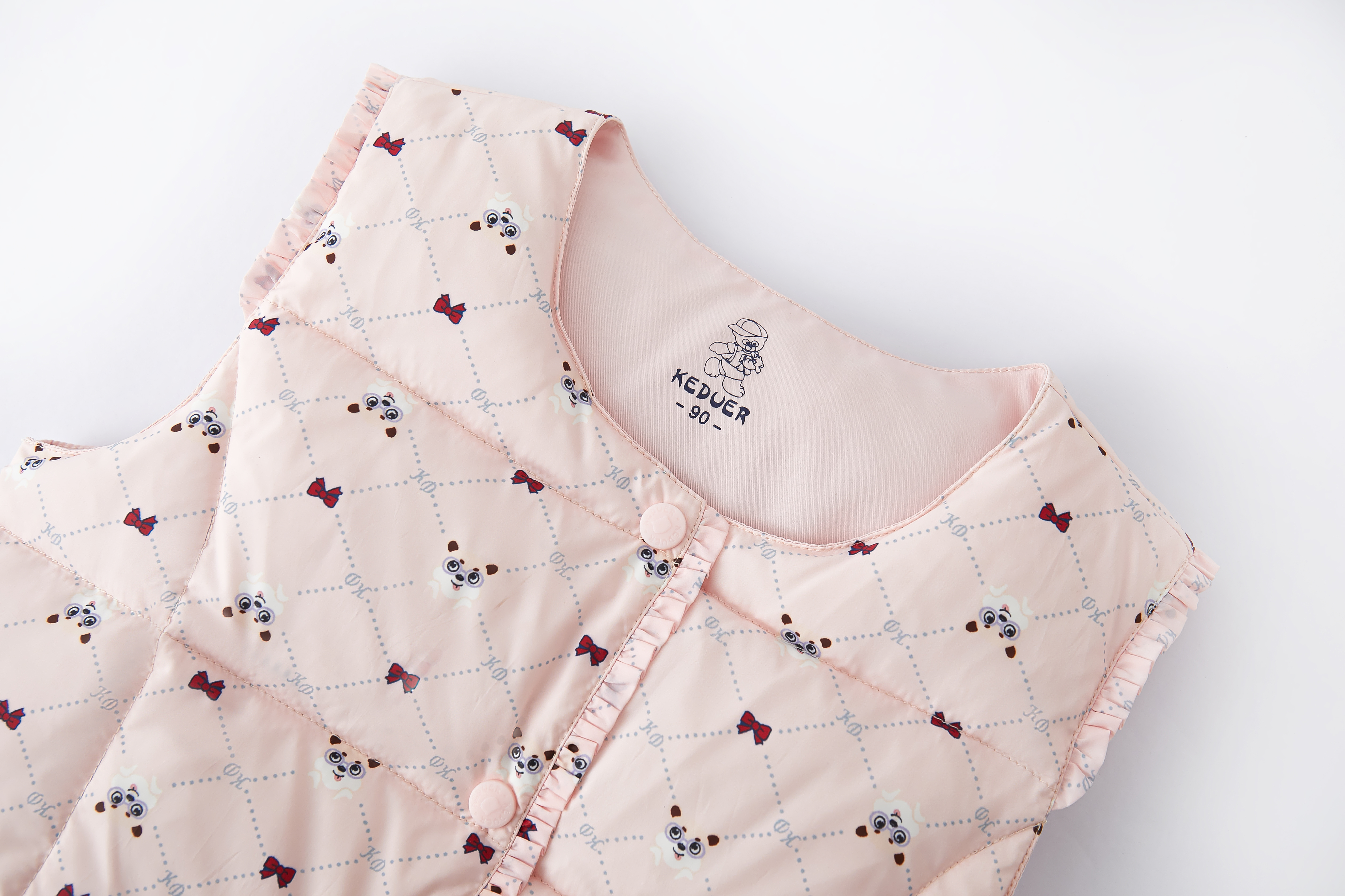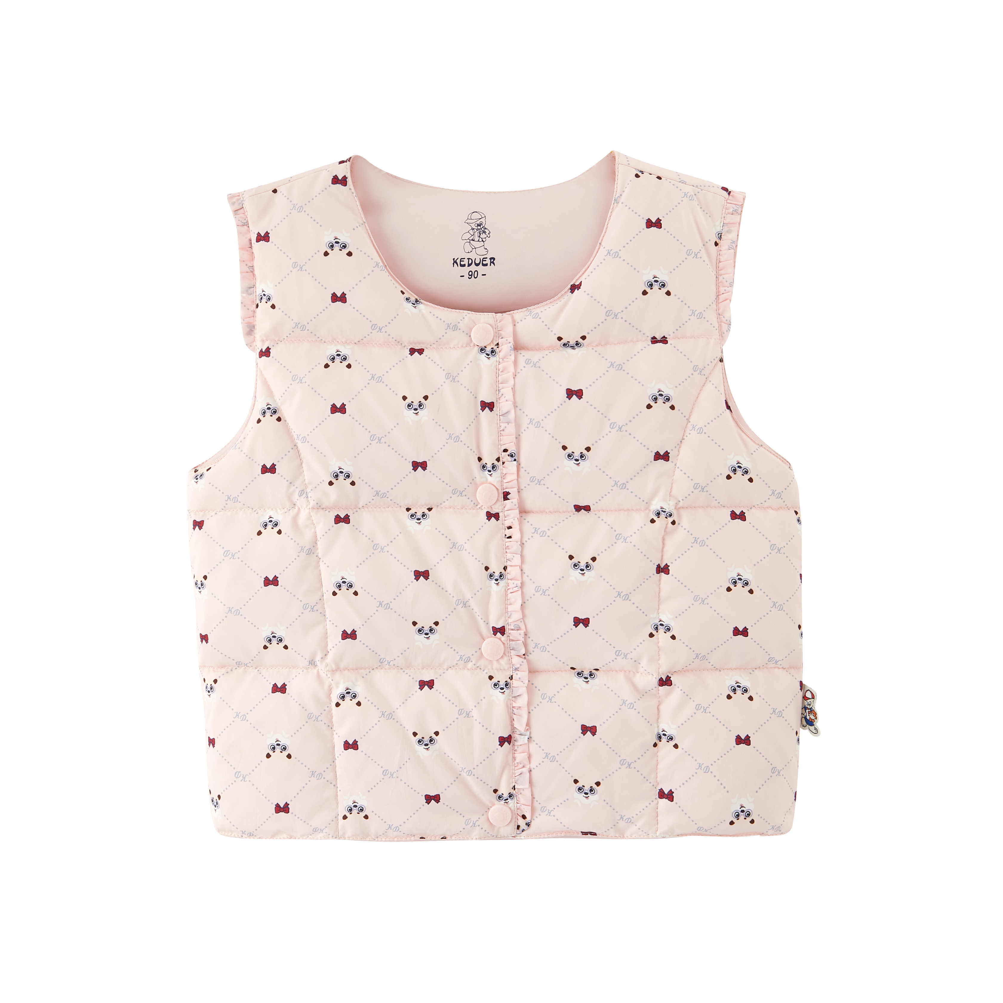 可嘟儿方格羽绒马甲印花三色可选