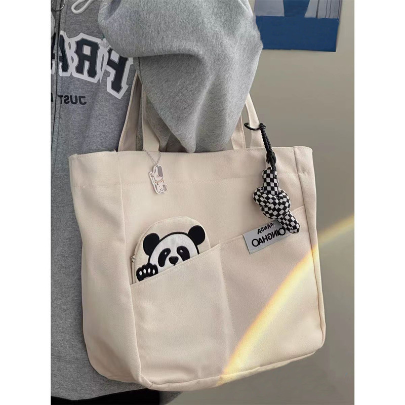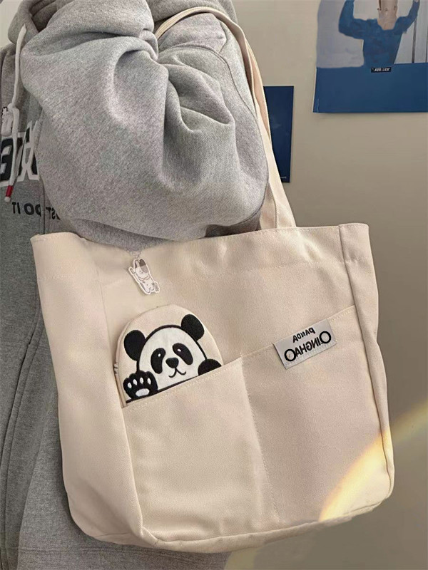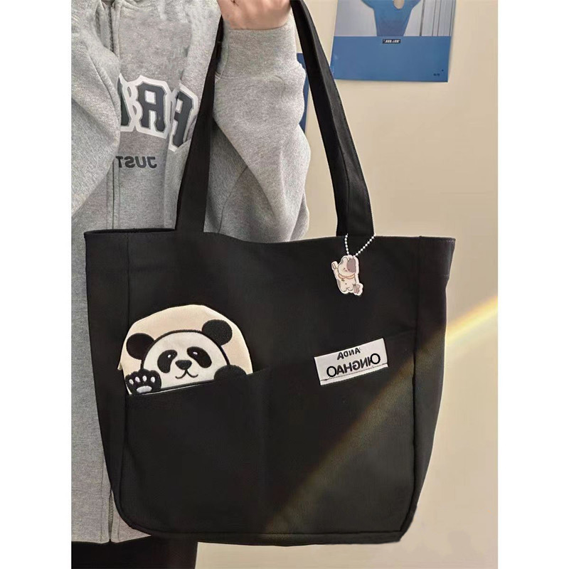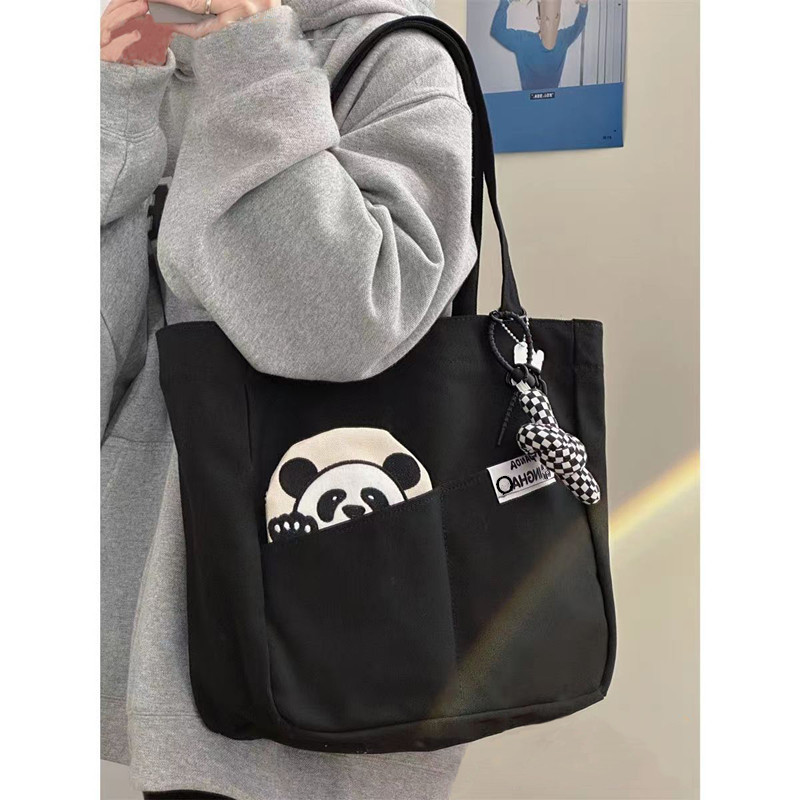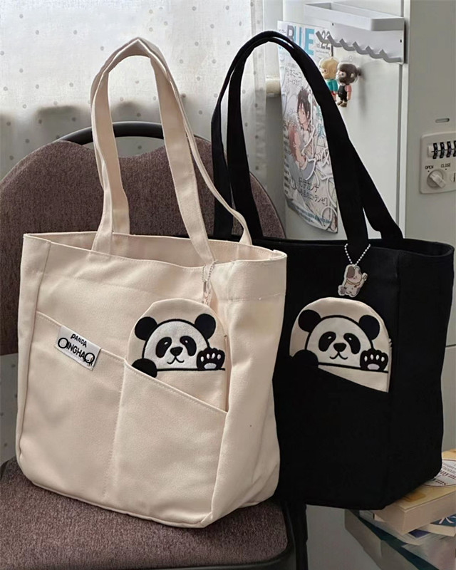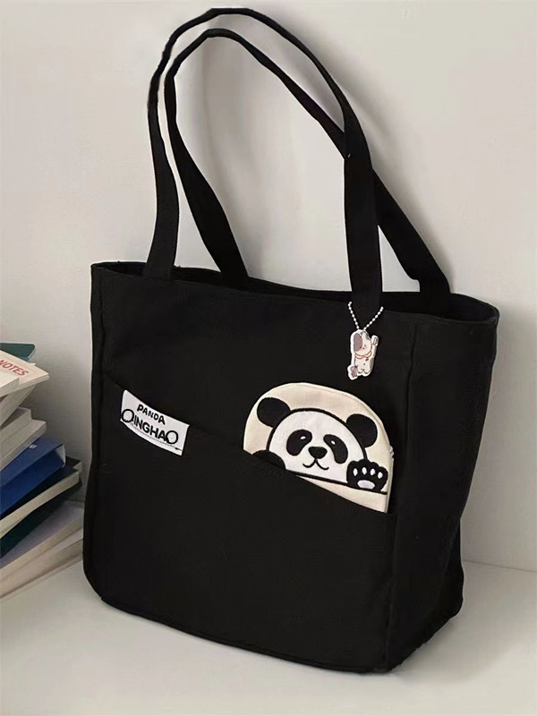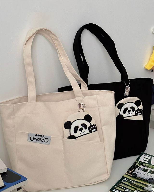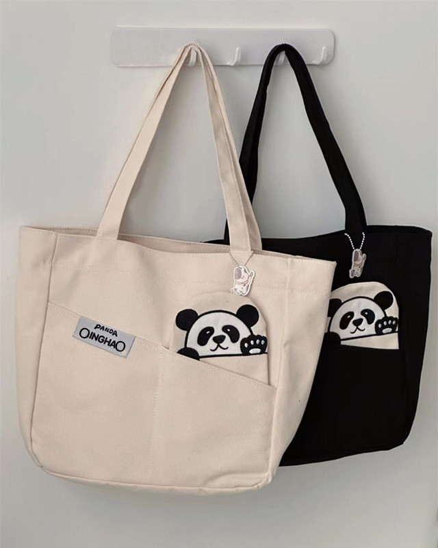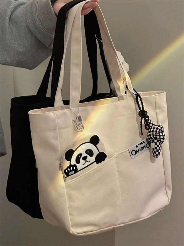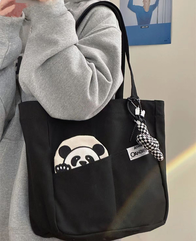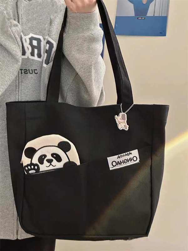「黑白两色!颜值派」新款单肩包大容量简约时尚手提包 都市简约敞口纯色可爱熊猫帆布箱包