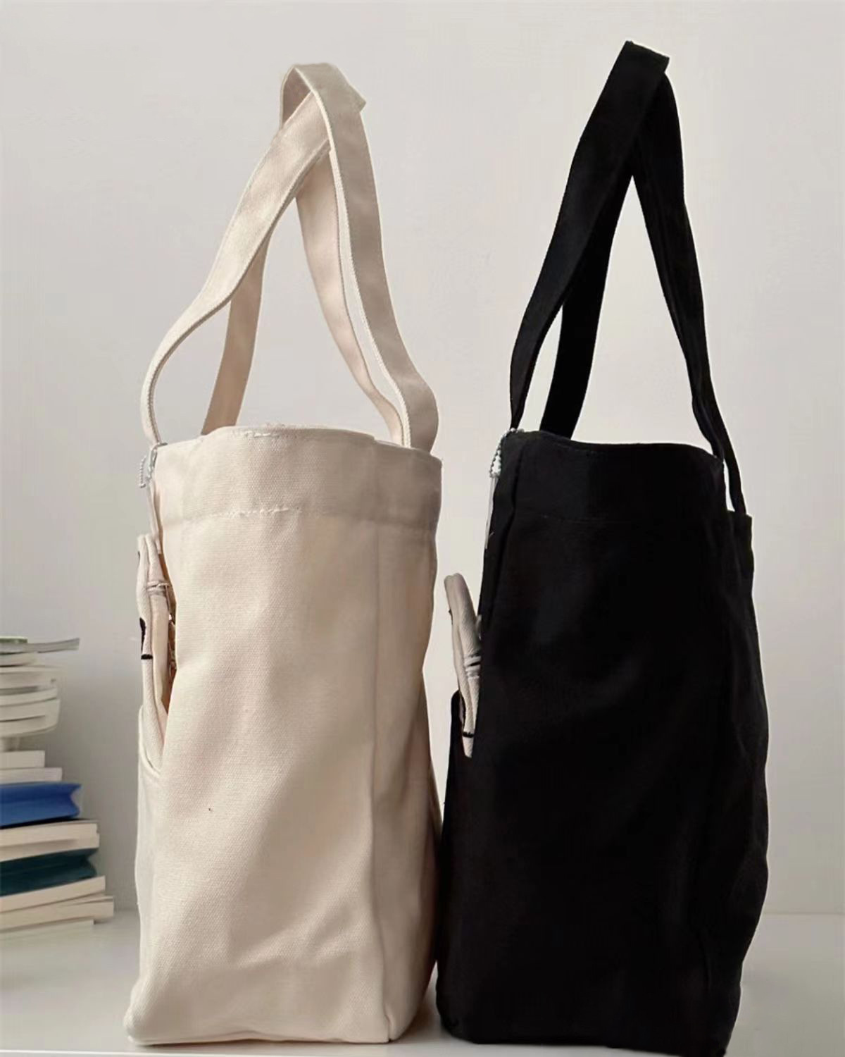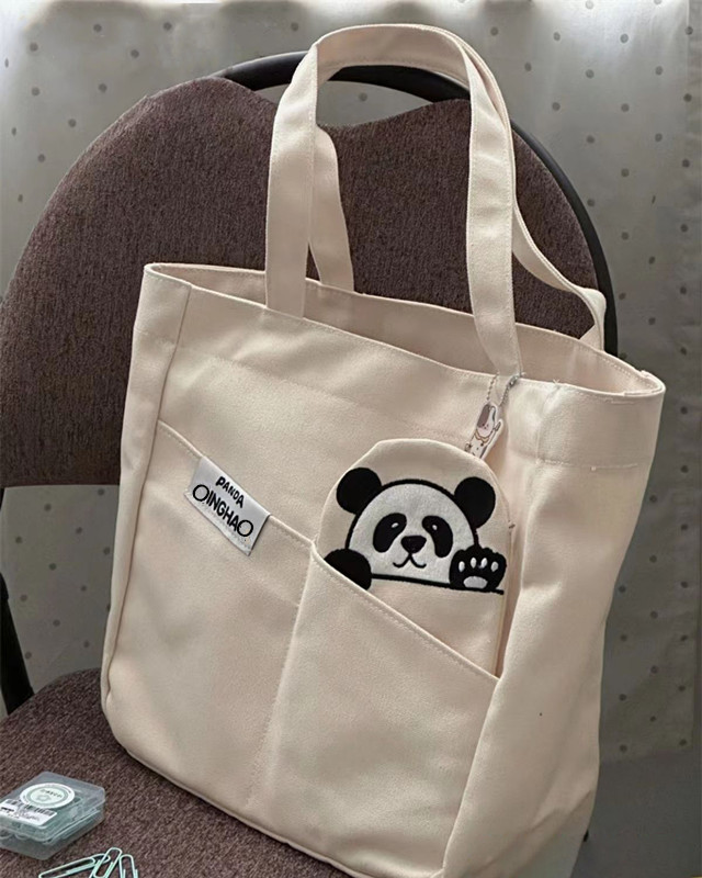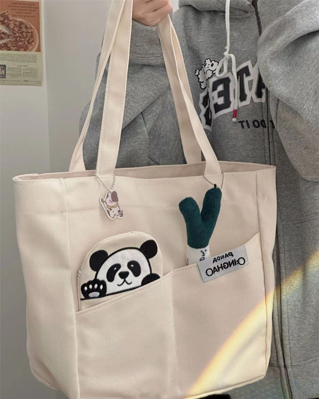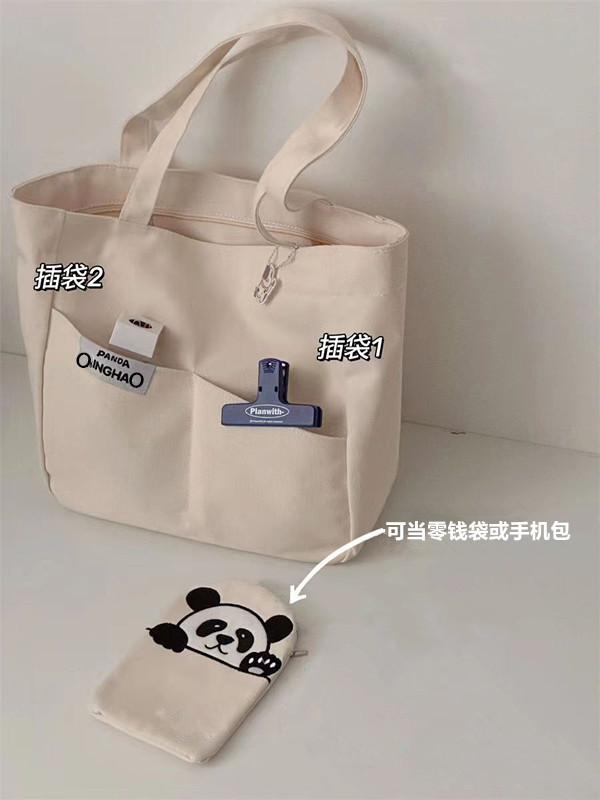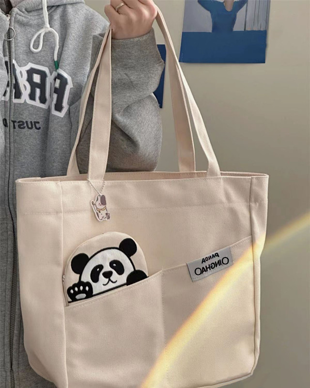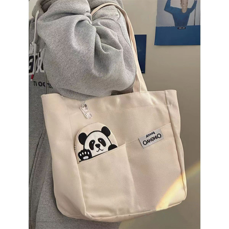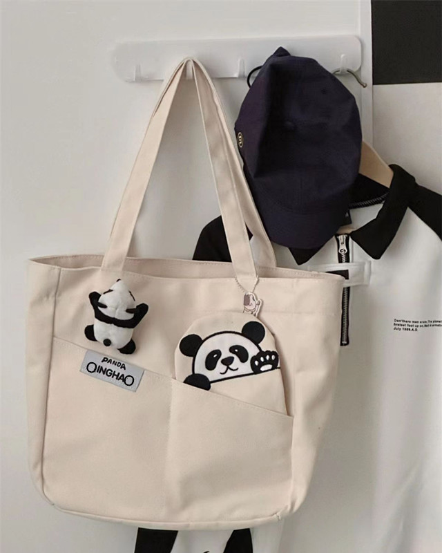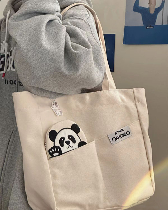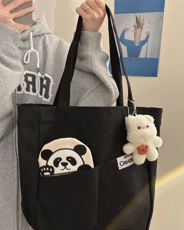 「黑白两色!颜值派」新款单肩包大容量简约时尚手提包 都市简约敞口纯色可爱熊猫帆布箱包