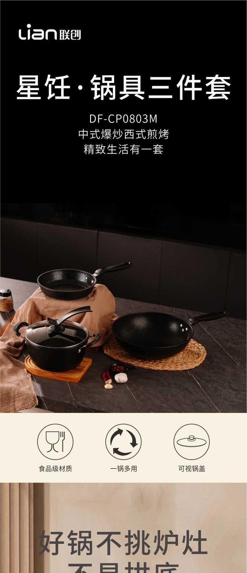 联创 星饪·锅具三件套 DF-CP0803M 不粘锅三件套家用厨具