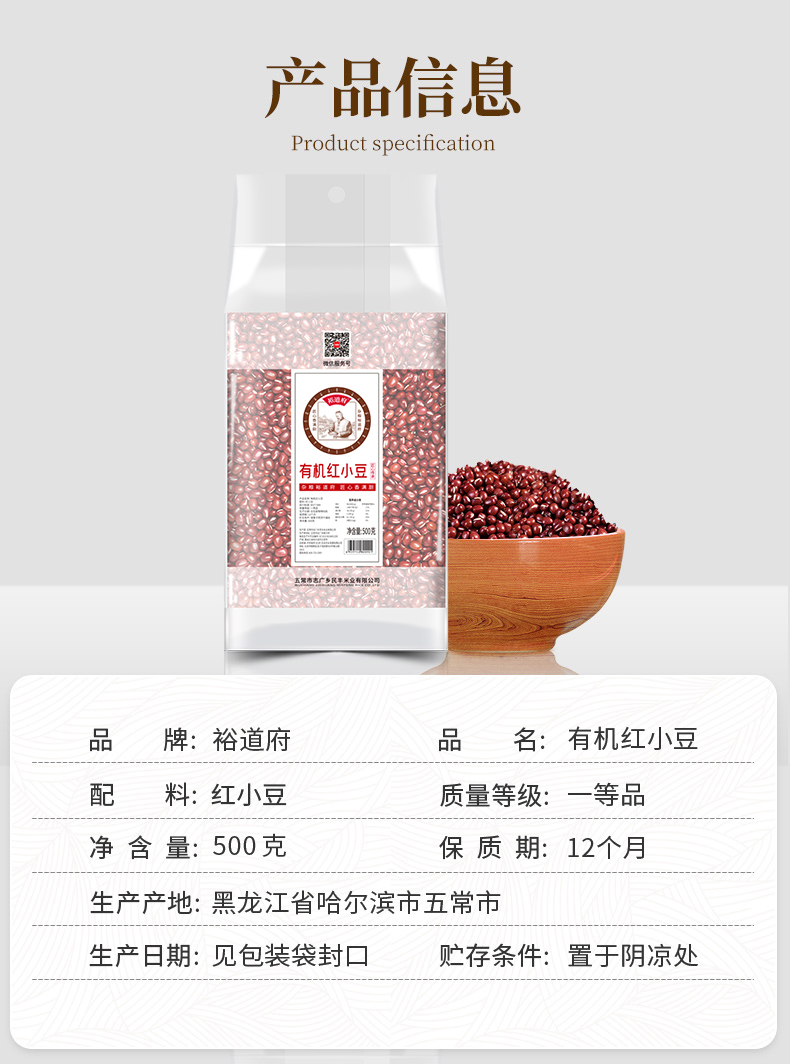 裕道府 有机红小豆/绿豆/黄豆 500g