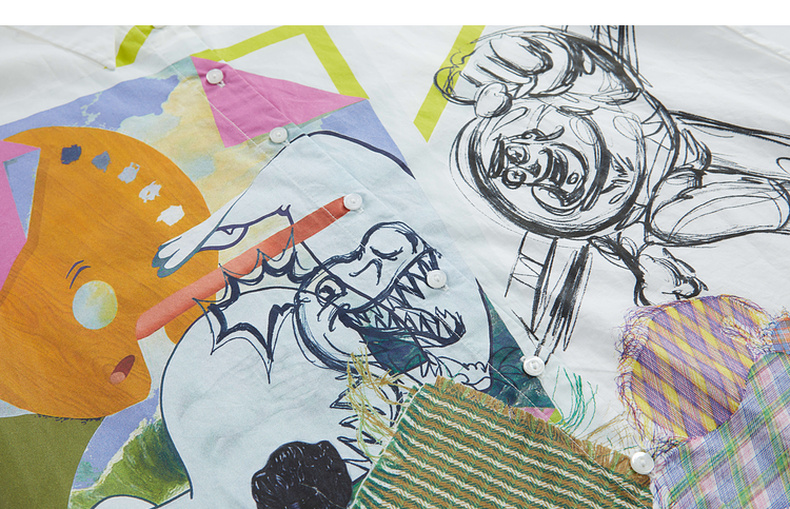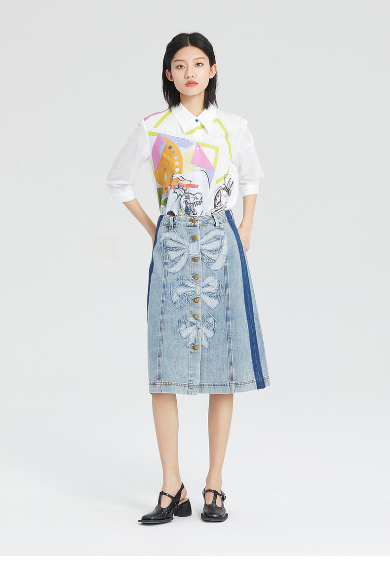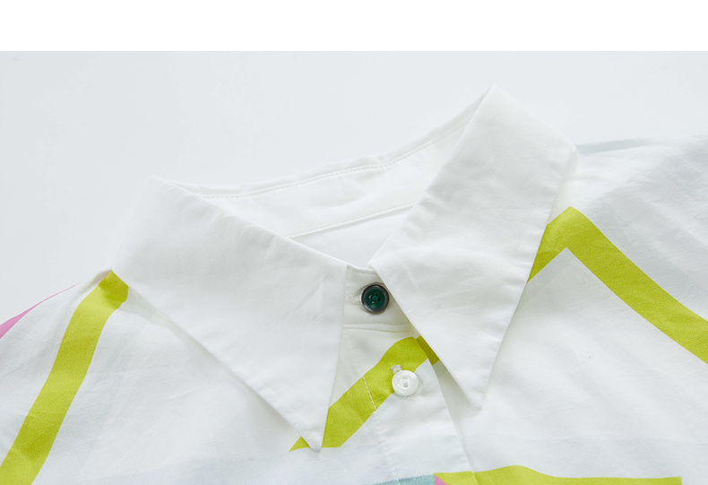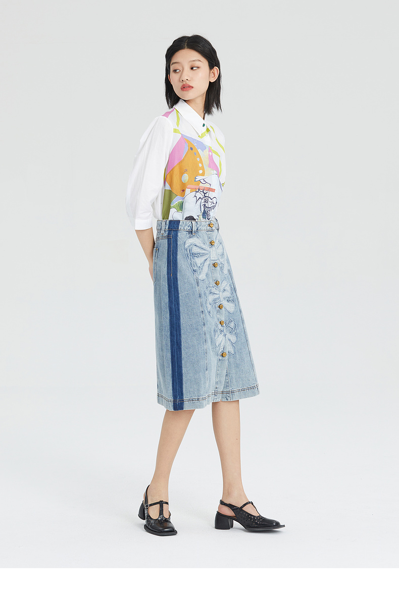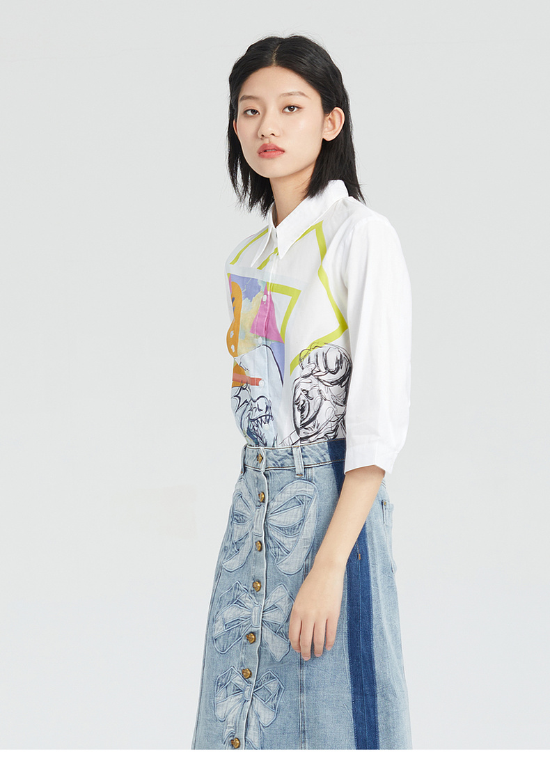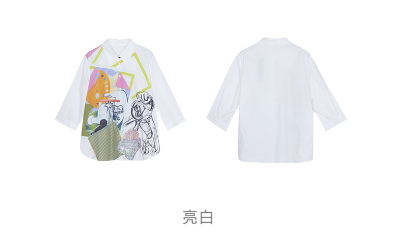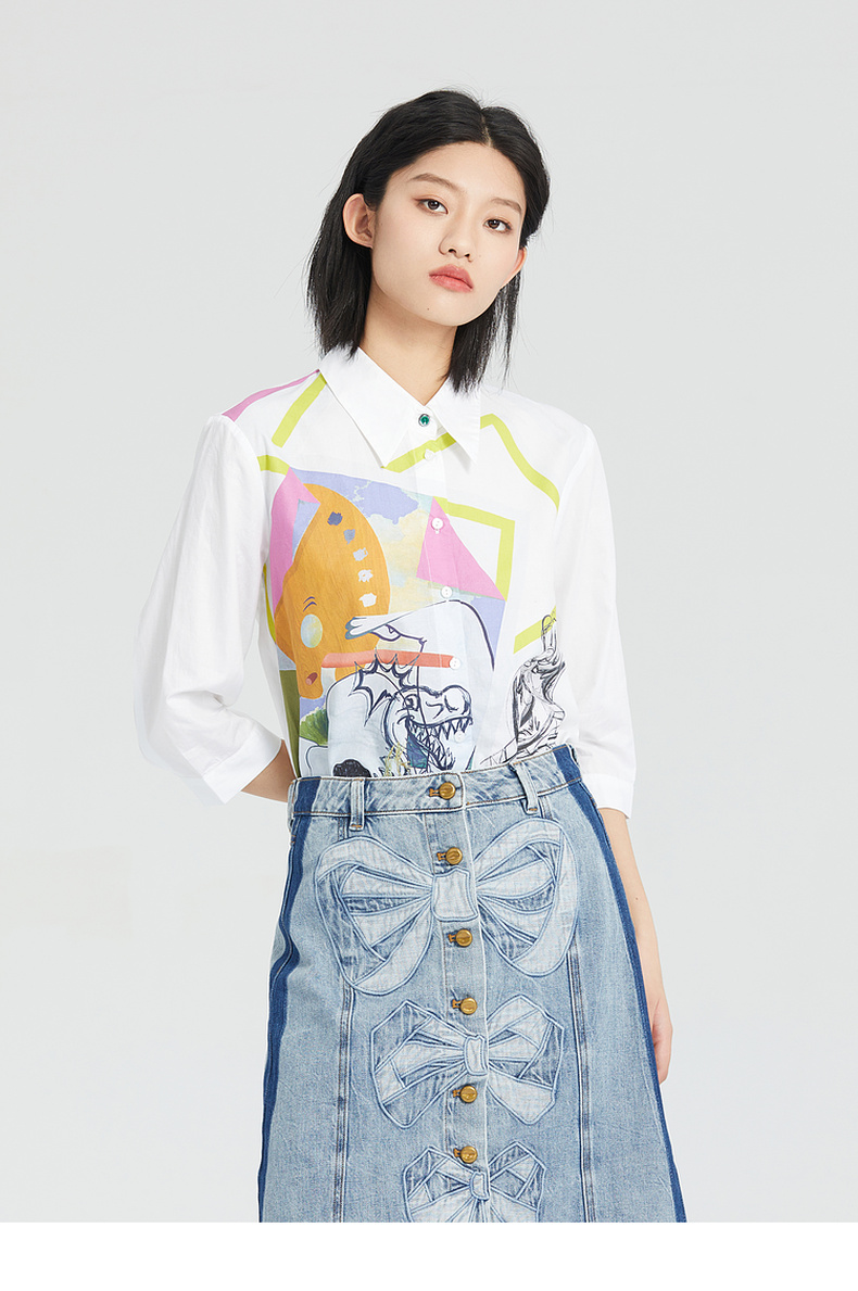 谜底棉麻衬衫女2023夏季新款简约趣味印花宽松7分袖上衣235MC6001