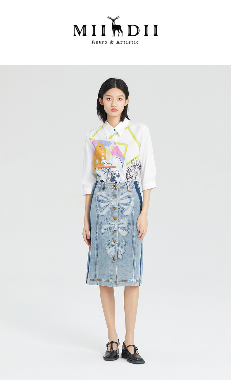 MIIDII谜底牛仔裤女2022春款舒适柔软天丝棉刺绣长裤女221MK0032